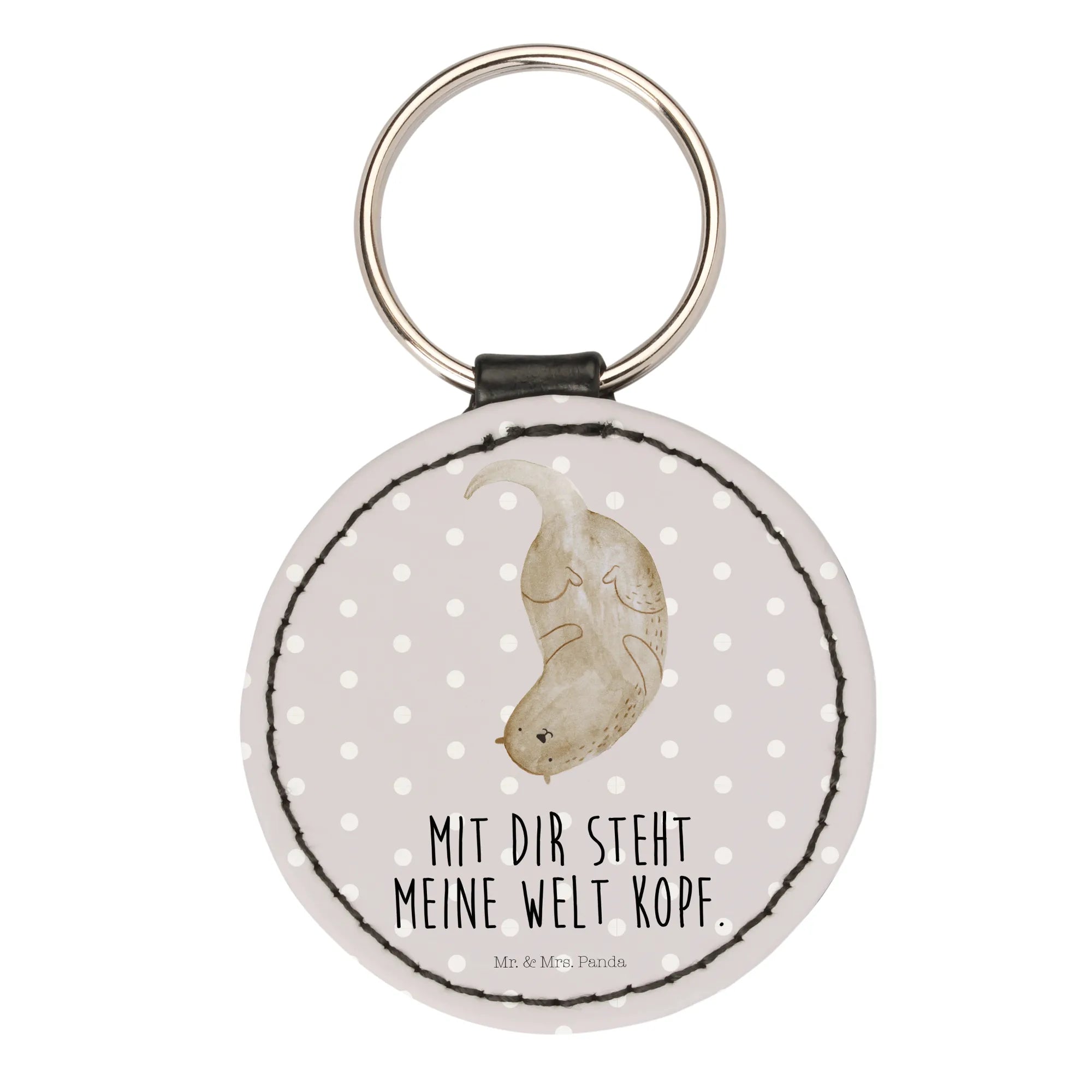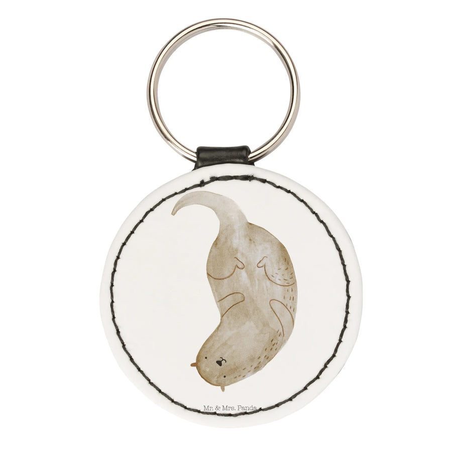 Rund Schlüsselanhänger Otter Kopfüber - ohne Spruch - Weiß