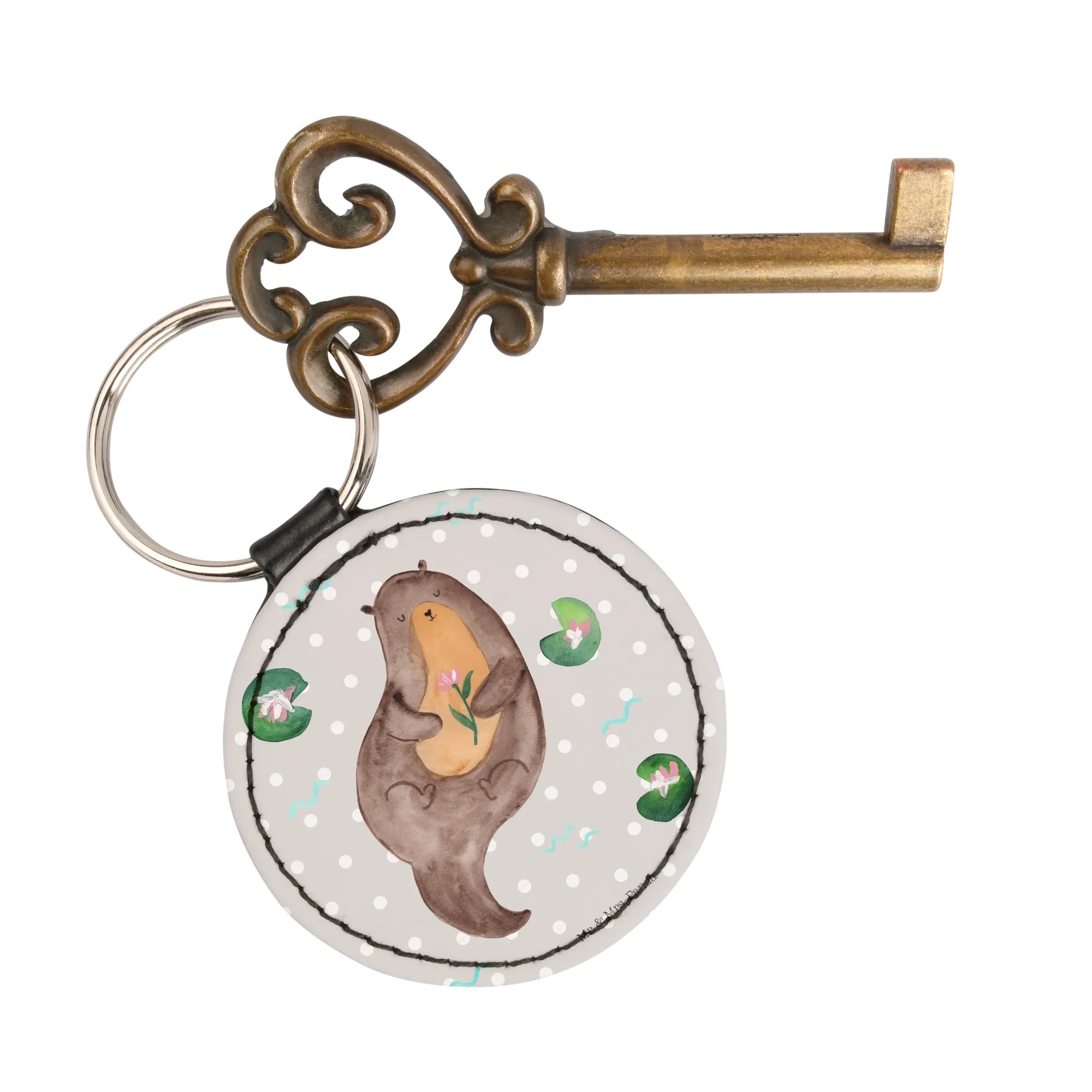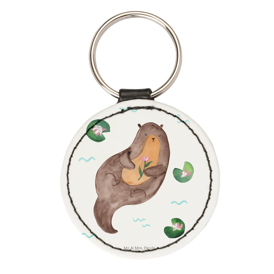 Rund Schlüsselanhänger Otter Seerose - ohne Spruch - Weiß