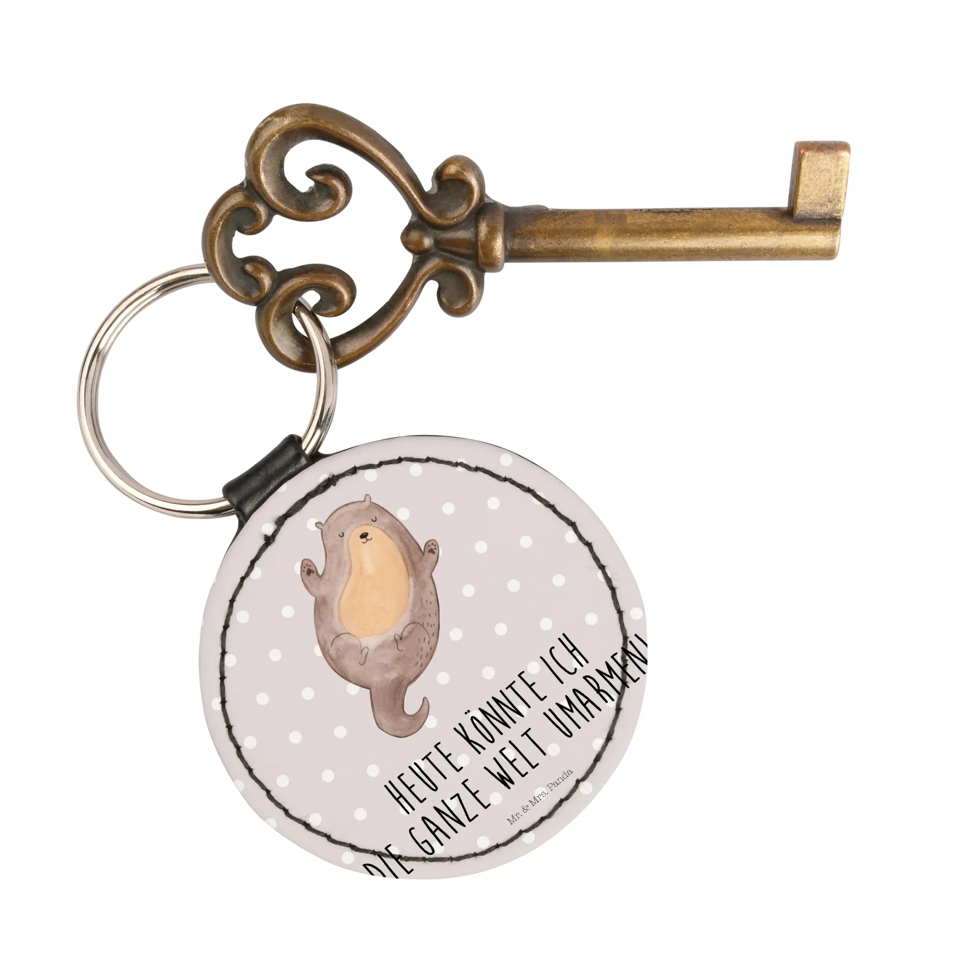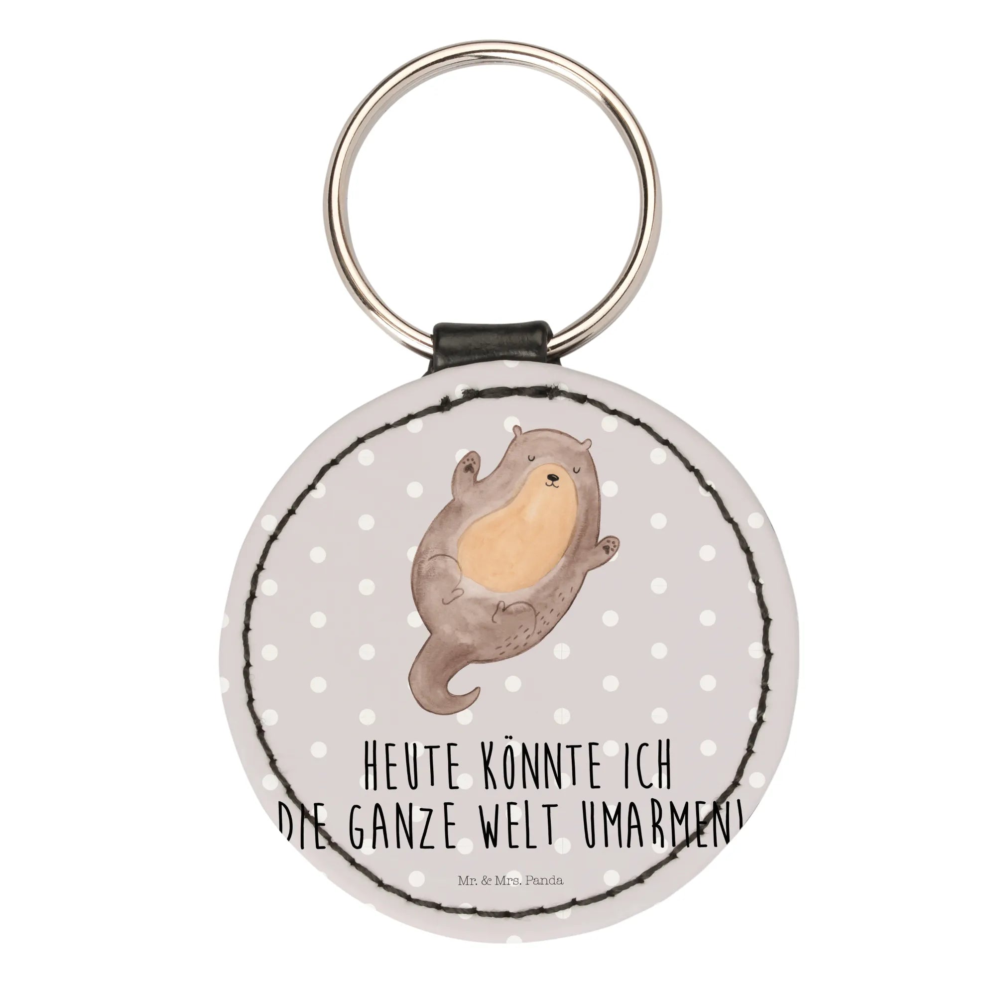 Rund Schlüsselanhänger Otter Umarmen - mit Spruch - Grau Pastell