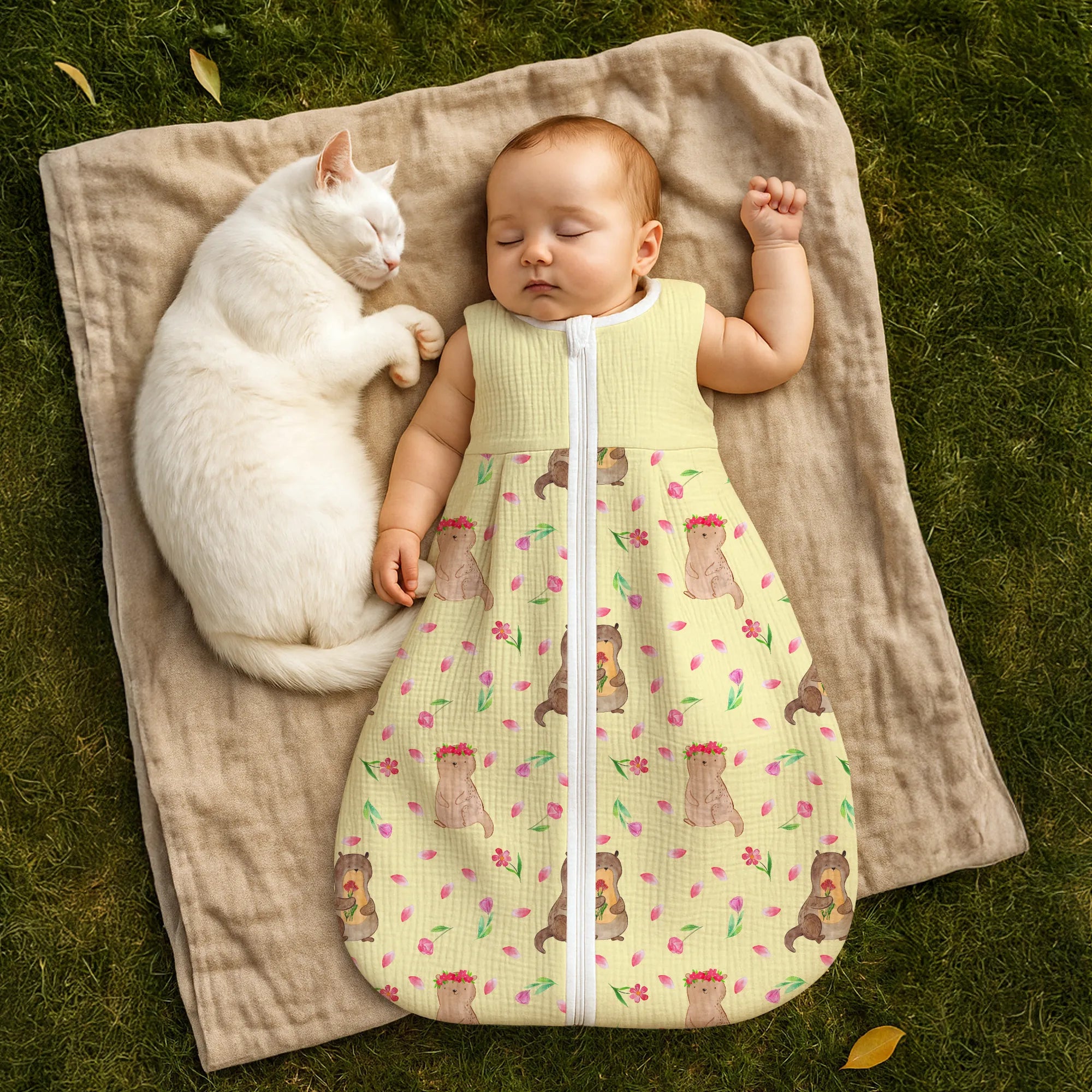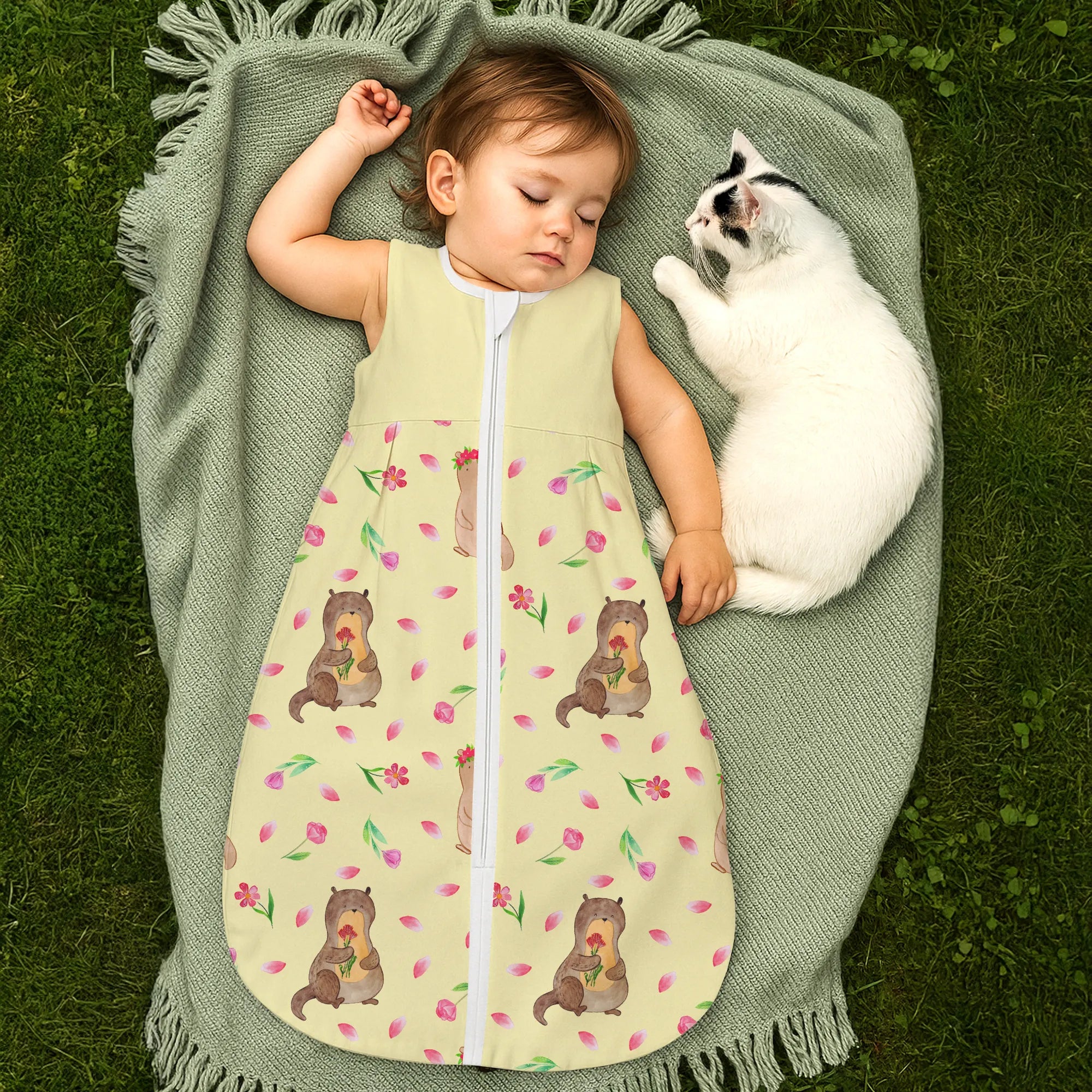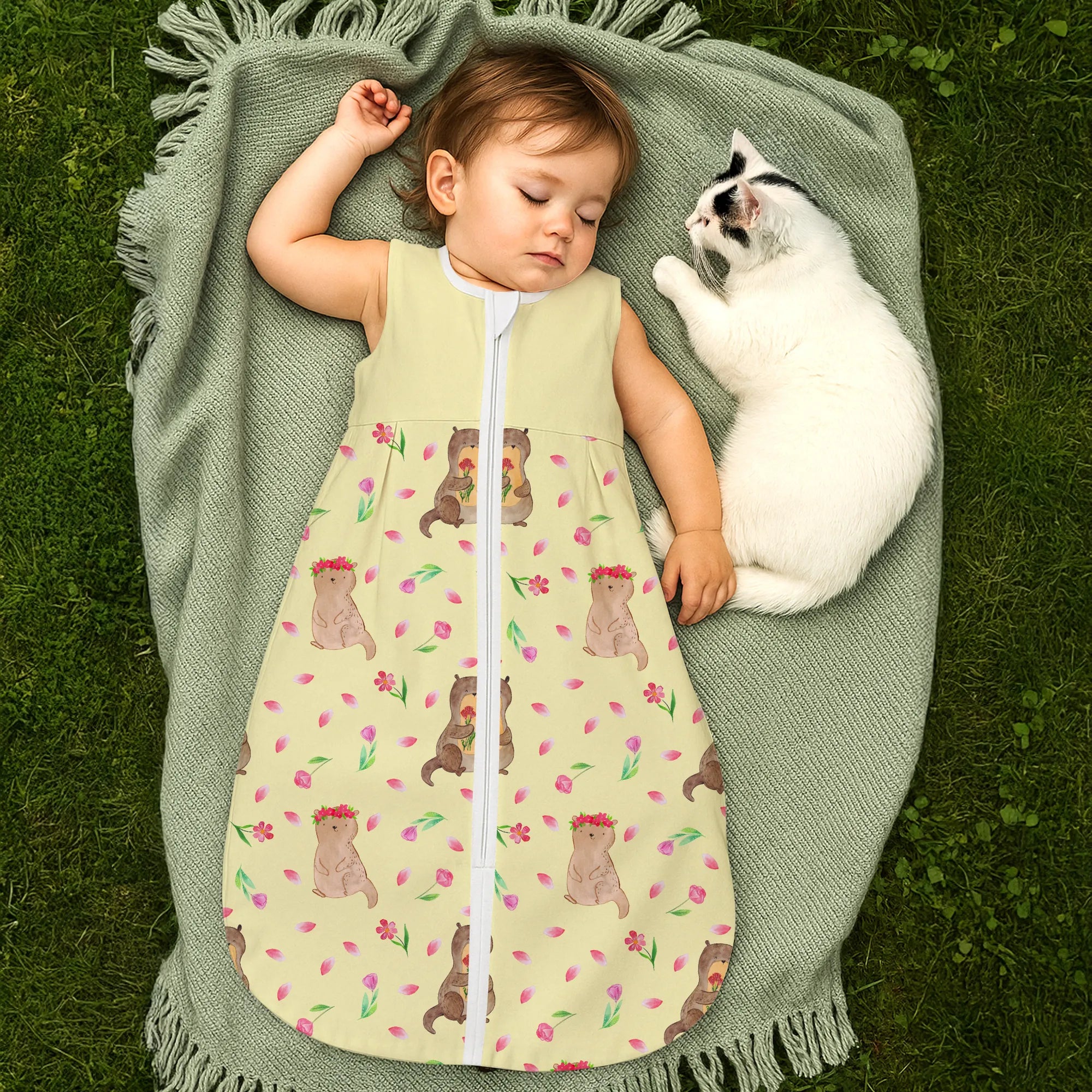 Schlafsack Baby Otter Blumenstrauß Muster - 18. - 24. Monat - Jersey