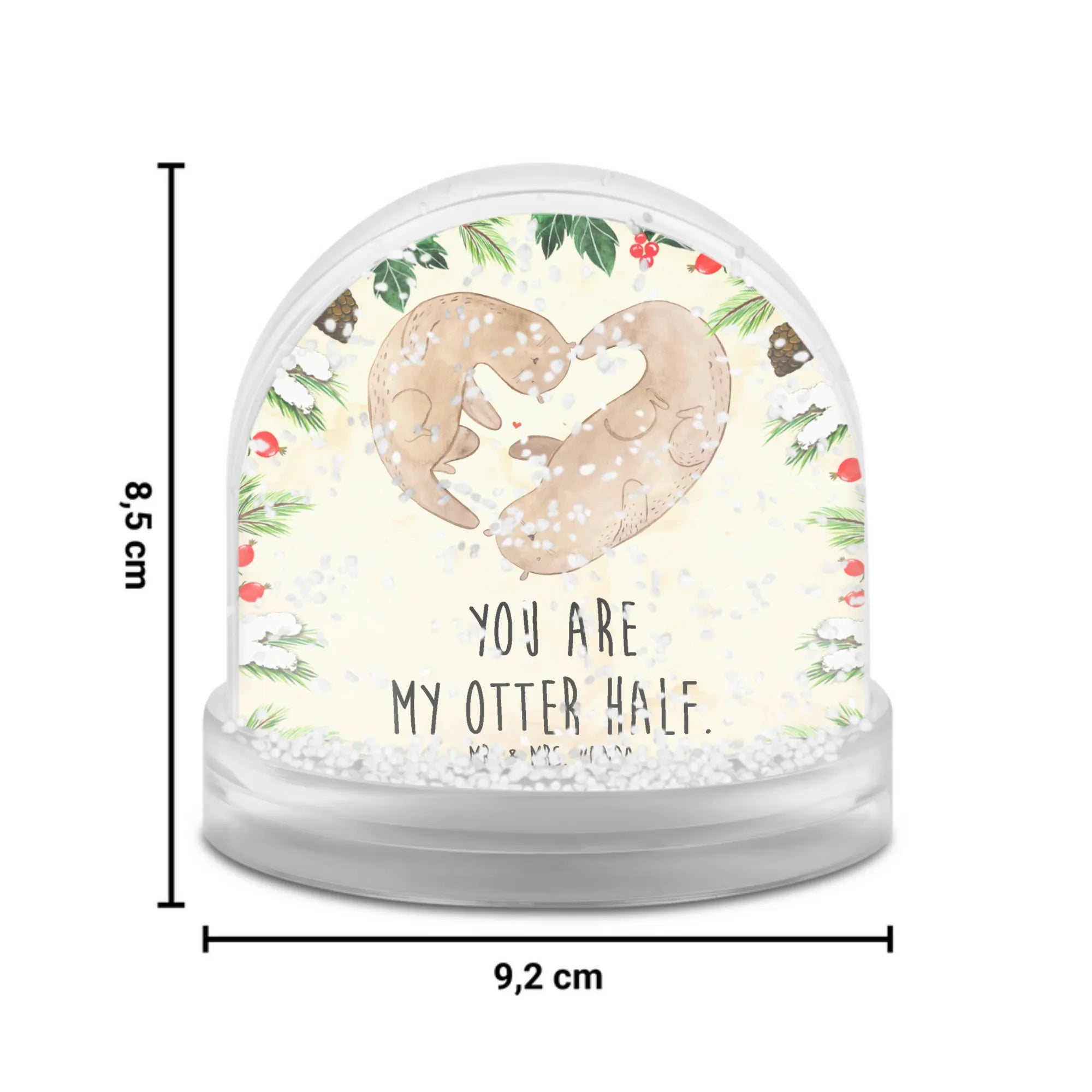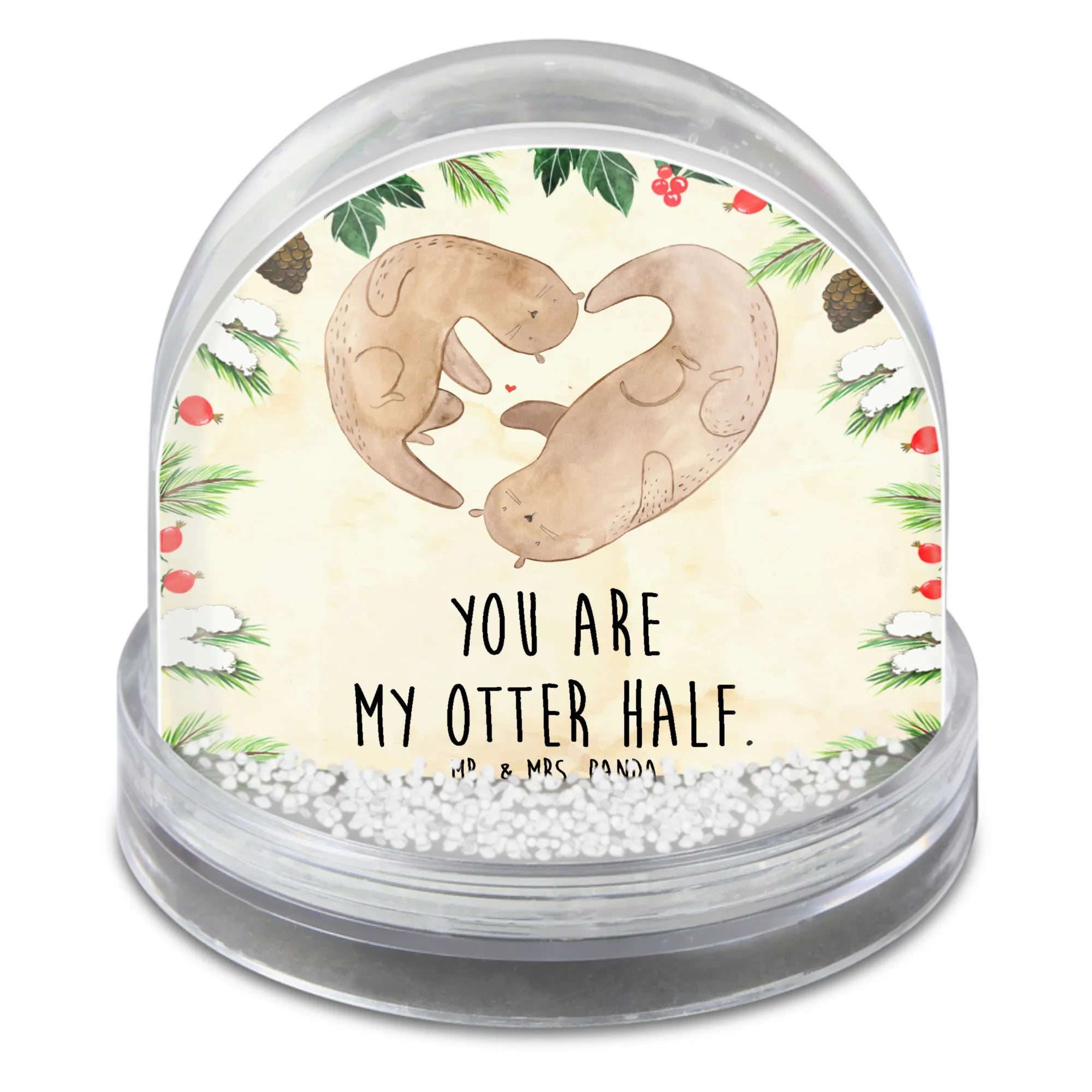 Die wunderschöne Schneekugel von Mr. & Mrs. Panda mit dem niedlichen Otter Herz ist das perfekte Geschenk für alle, die Liebe und Freude in ihrem Leben schätzen. Mit dem süßen Motiv eines Otters, der ein Herz in den Armen hält, verkörpert sie die Botschaft "You are my otter half."
