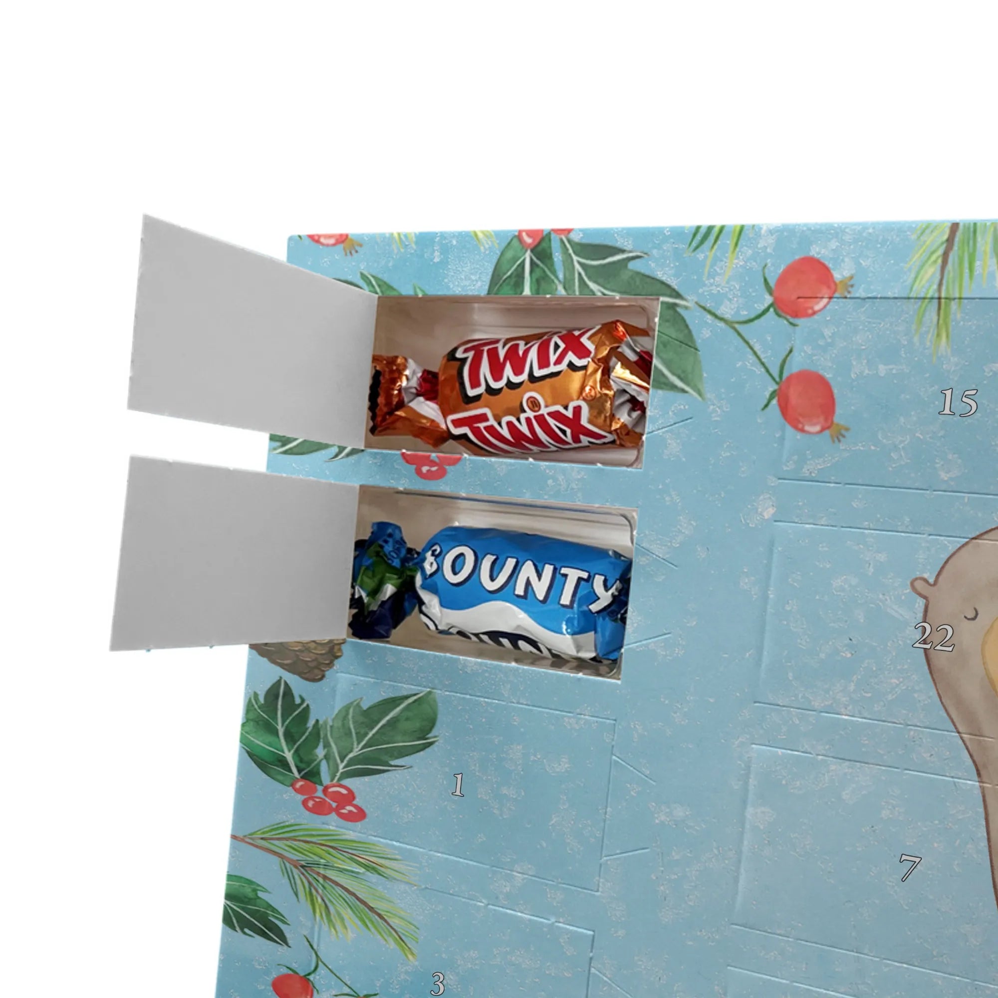 🐼 Schoko-Adventskalender: Liebevolles Design, seidenmatt, brillanter Druck – ein Hingucker.