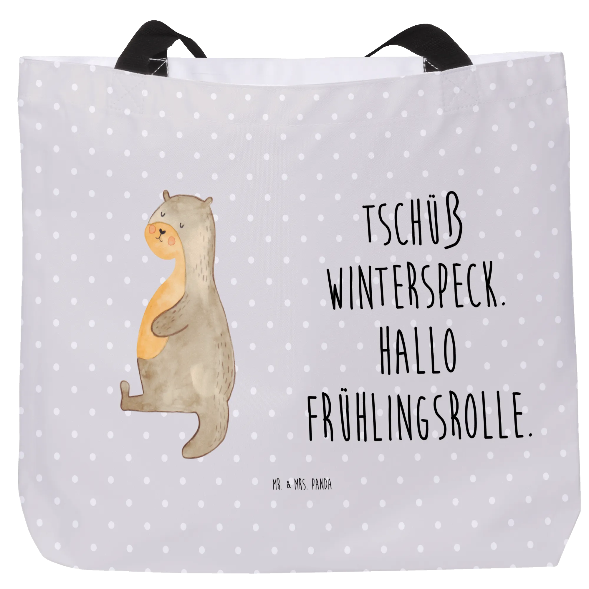 Das süße Otter-Motiv, das von Mrs. Panda handgezeichnet wurde, sorgt dafür, dass du immer eine Portion Freude ausstrahlst. Mit dem Slogan "Tschüß Winterspeck. Hallo Frühlingsrolle." erinnert die Tasche uns daran, die frischen Frühlingsvibes zu genießen und den Winter hinter uns zu lassen.