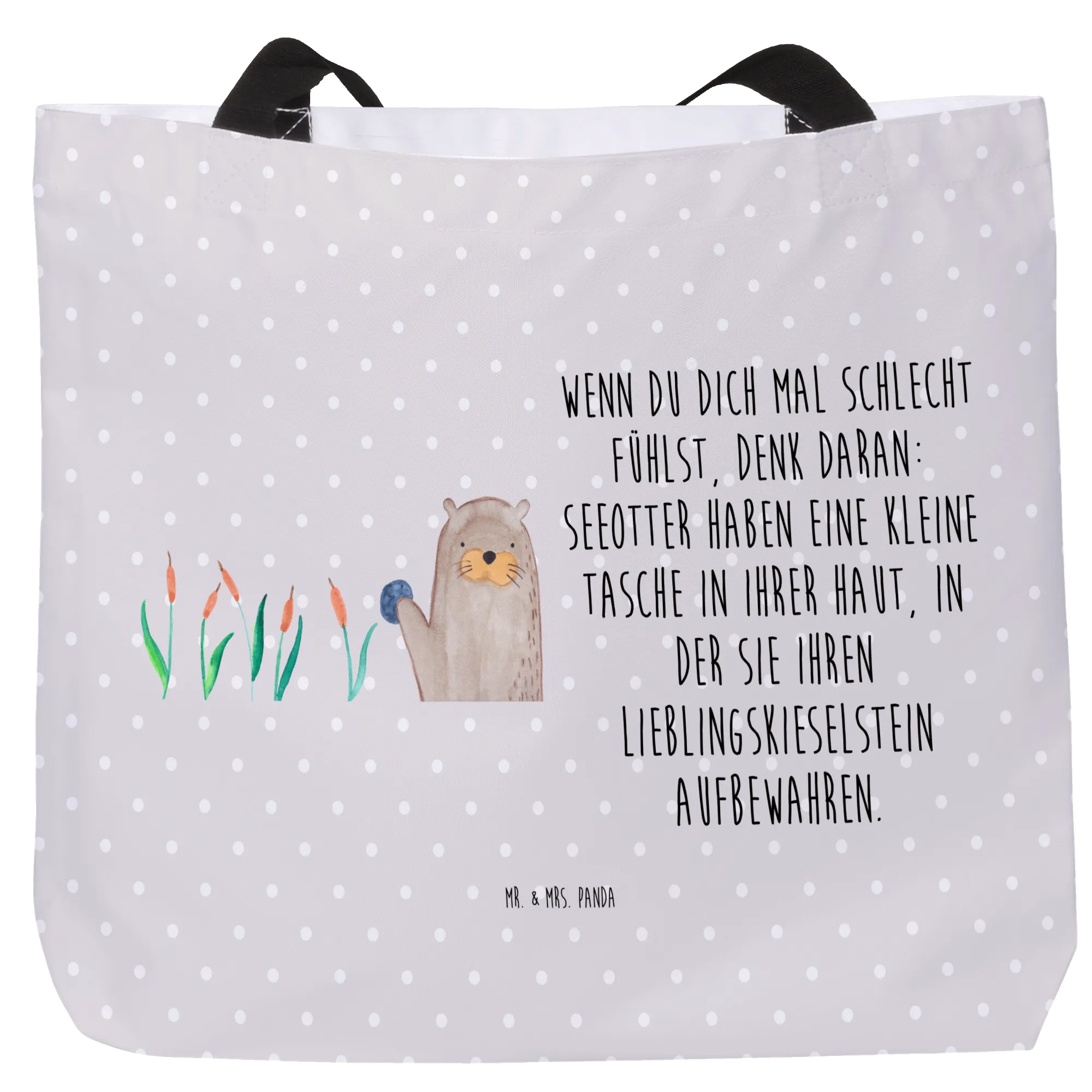 Entdecke unseren wunderschönen Shopper mit dem fröhlichen Motiv "Otter mit Stein" aus der Otter-Kollektion! 🦦 Dieser Shopper von Mr. & Mrs. Panda ist nicht nur ein stilvolles Accessoire, sondern auch äußerst praktisch. Mit einer Größe von 500 mm x 380 mm und einer Henkellänge von 470 mm ist er perfekt für all deine Einkäufe oder für einen Tag am Strand. 🌊