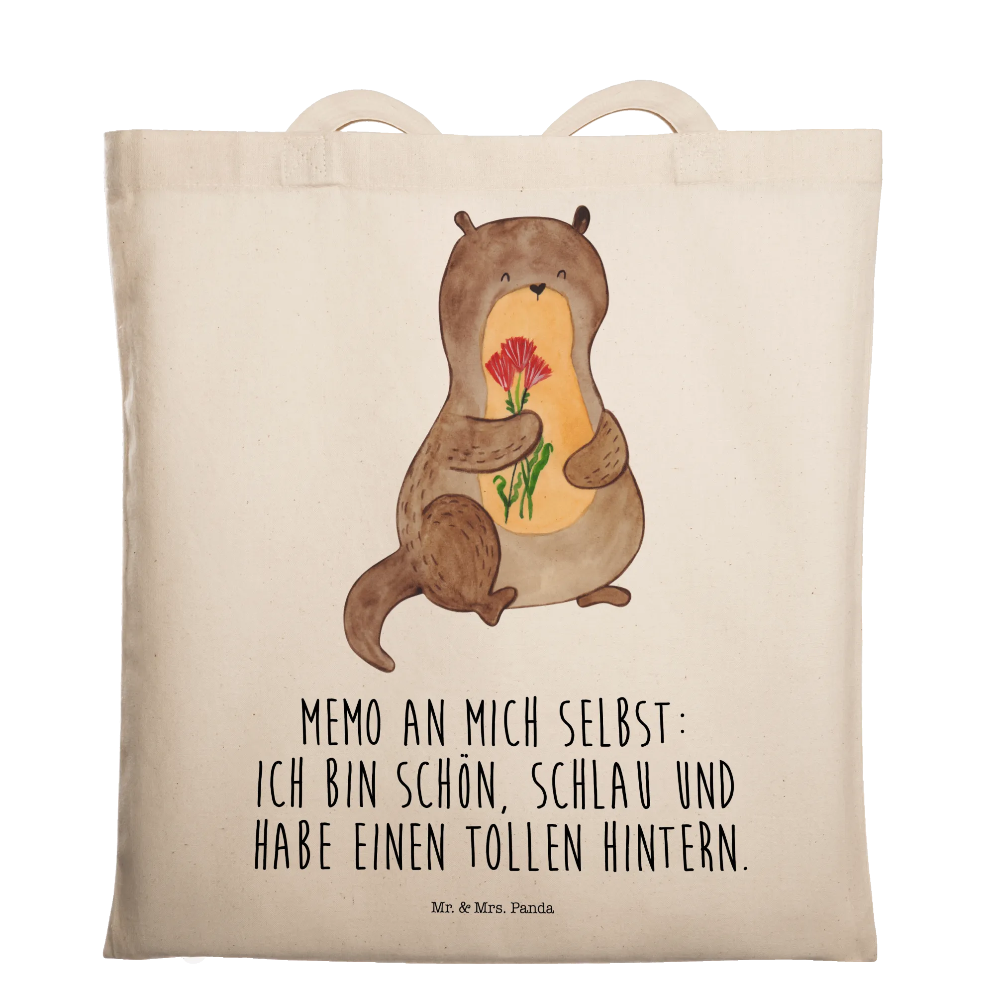 Entdecke die bezaubernde Tragetasche "Otter Blumenstrauß" von Mr. & Mrs. Panda! Diese besondere Tasche bringt all die Freude und Lebendigkeit mit, die du dir nur wünschen kannst. Mit dem süßen Motiv eines kleinen Otters, der fröhlich einen bunten Blumenstrauß in seinen Pfötchen hält, verleiht diese Tragetasche deinem Outfit das gewisse Etwas.