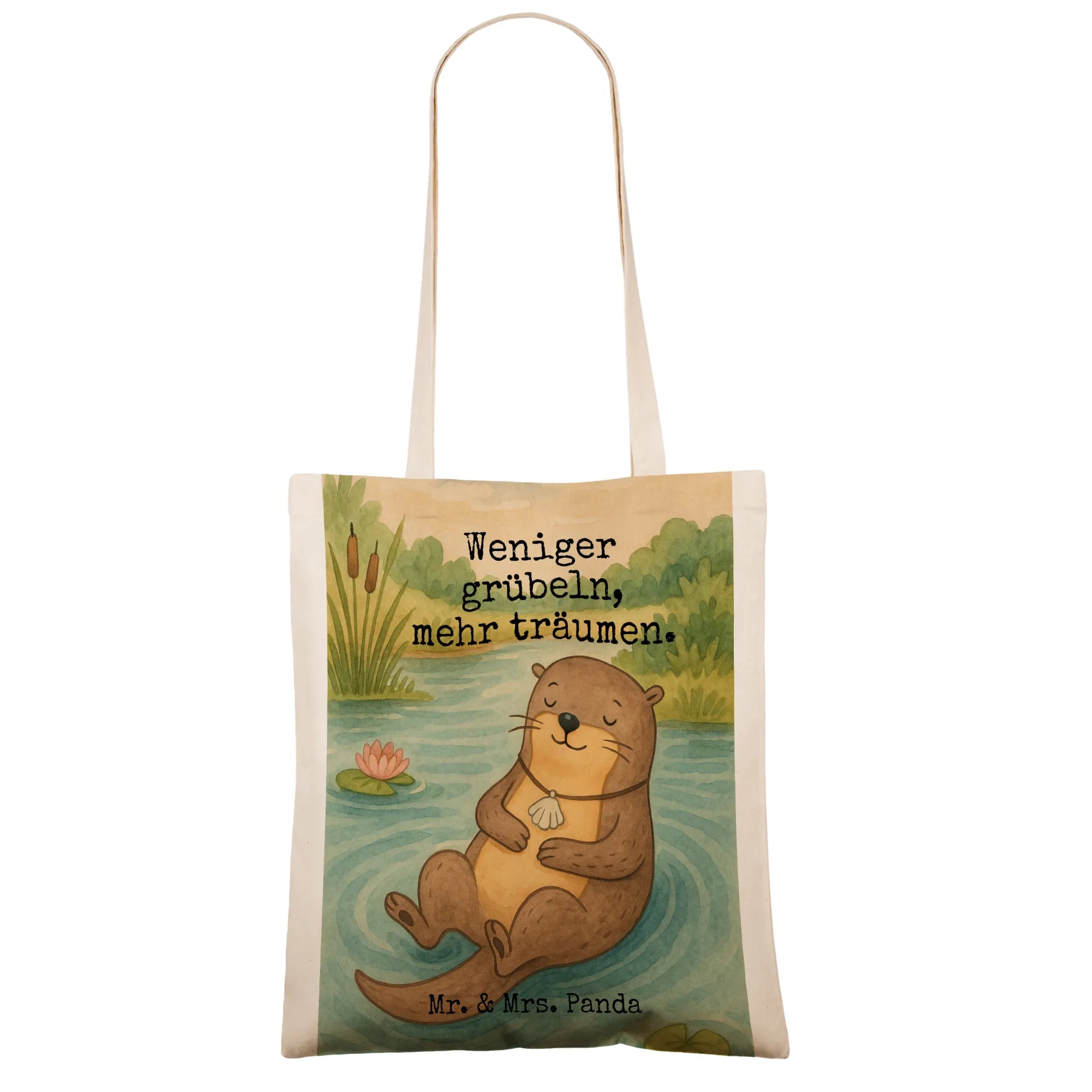 Ein Otter, der träumend mit seiner Muschelmedaillon am Wasser treibt, symbolisiert die Reinheit und Verspieltheit, die wir alle in uns tragen. Das Motiv von Mr. & Mrs. Panda mit dem Spruch 'Weniger grübeln, mehr träumen' erinnert uns daran, dass es essentiell ist, sich Zeit zu nehmen, unsere Träume zu kultivieren und ihnen Raum zu geben. Es spricht eine Einladung aus, einen Gang herunterzuschalten und die schönen Momente im Leben wertzuschätzen.
