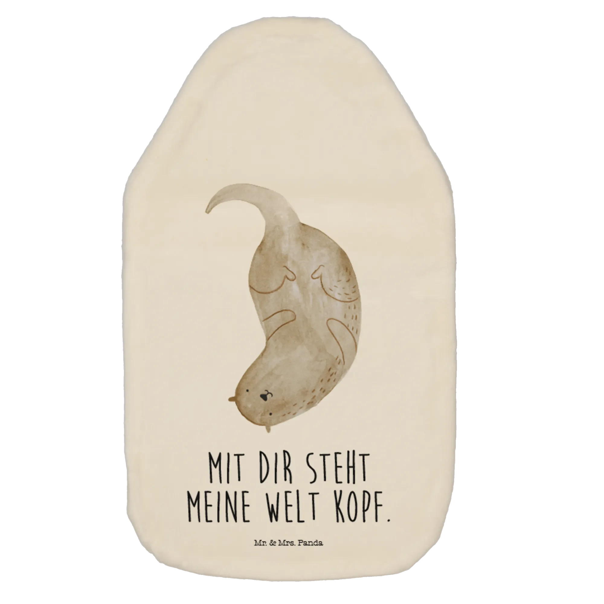 Wärmflasche Otter kopfüber - mit Spruch - Weiß