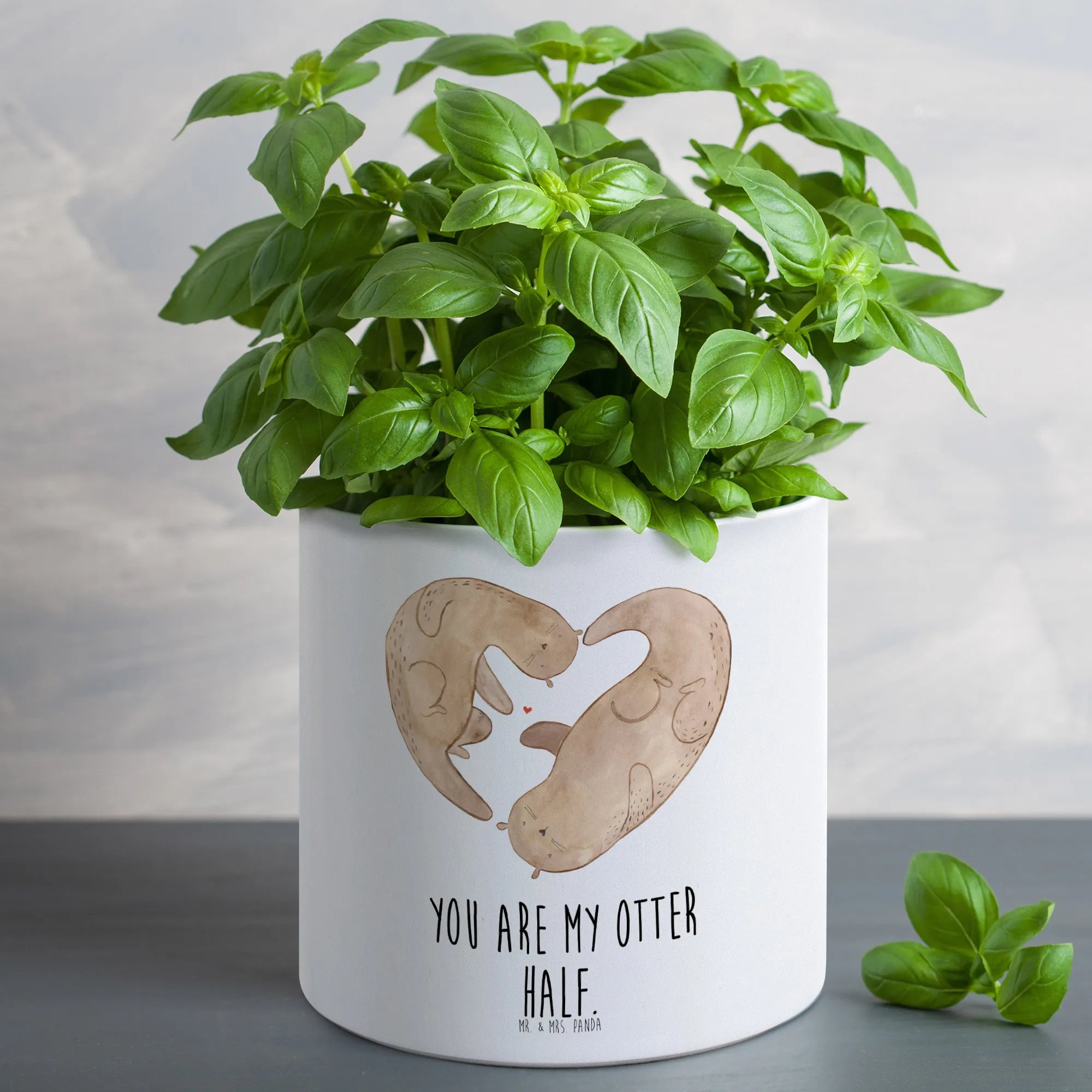 Der XL Blumentopf «Otter Herz» von Mr. & Mrs. Panda ist die perfekte Wahl für alle, die ihrem grünen Daumen eine liebevolle Note verleihen möchten. Ob als Geschenk zum Jahrestag, zur Hochzeit oder einfach so aus Liebe – dieser außergewöhnliche Übertopf eignet sich ideal für Pflanzen jeder Art!