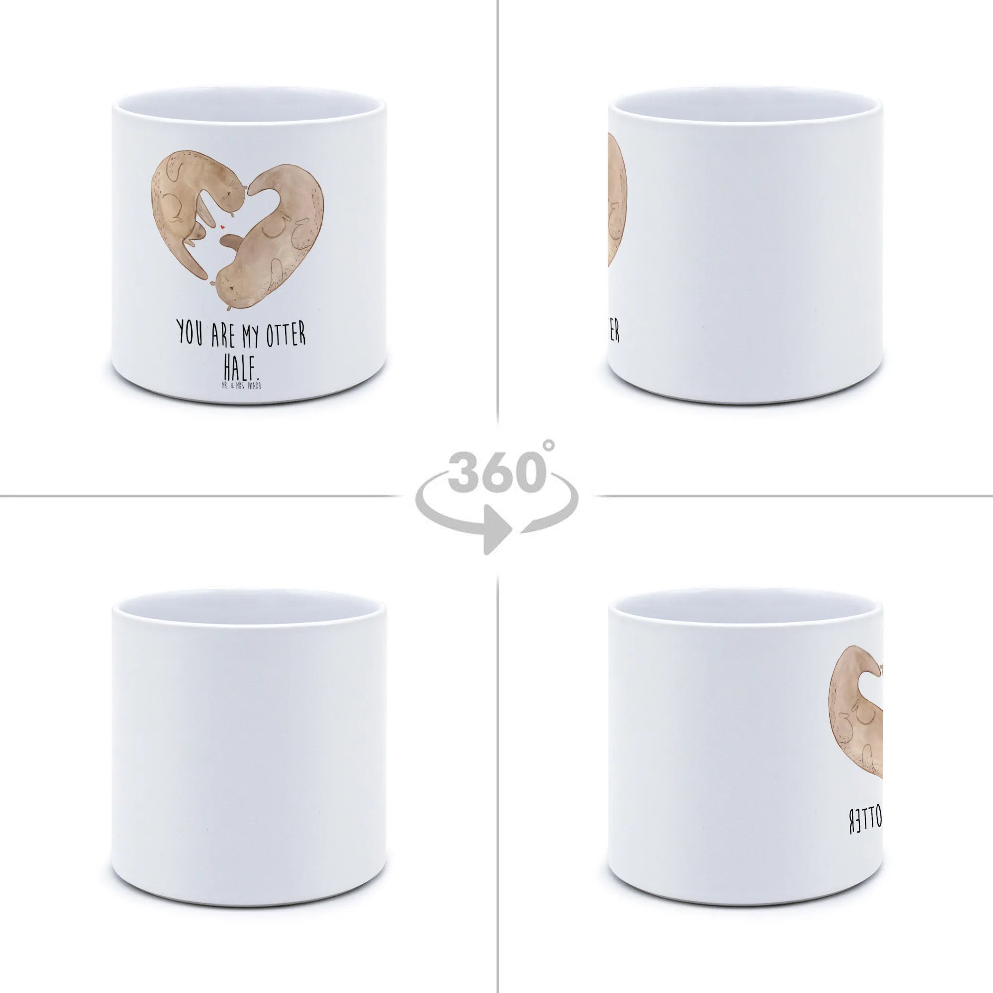 Das niedliche Design zeigt einen charmanten Otter, der mit Herz in den Armen eine Botschaft der Liebe verkörpert: "You are my otter half." Dieser Keramiktopf ist mit einer glänzenden Oberfläche versehen und bringt einen Hauch von Frische in jedes Zuhause.