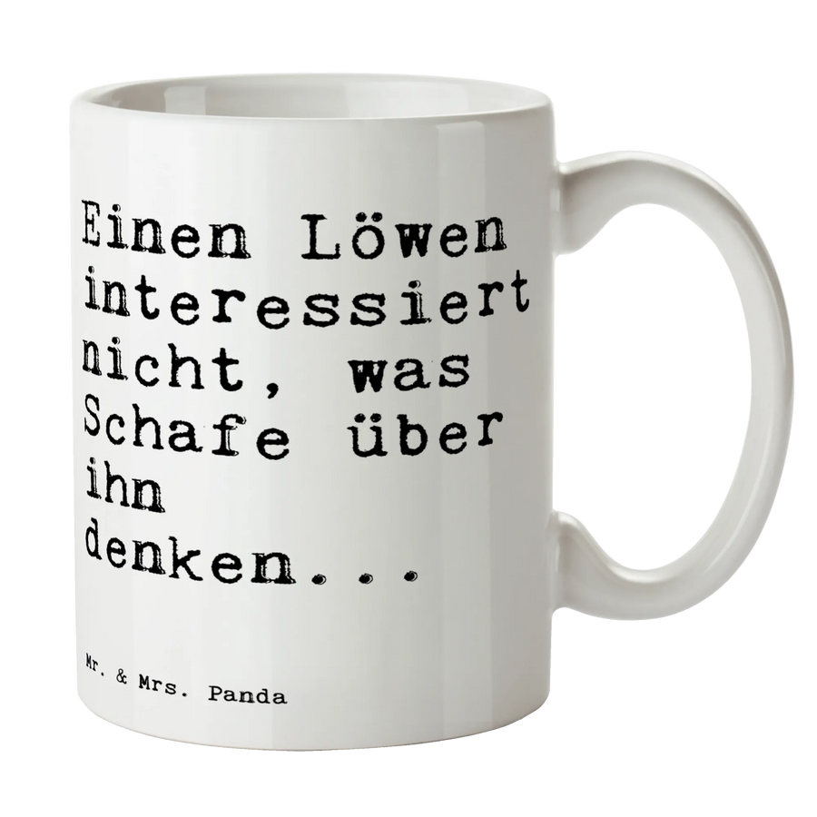 Geschenkidee für alle Kaffee- oder Teeliebhaber! Die Tasse "Einen Löwen interessiert nicht, was Schafe über ihn denken..." ist nicht nur ein hübsches Accessoire, sondern auch ein täglicher Begleiter, der dein Getränk warm hält und dich gleichzeitig mit einem starken Spruch inspiriert.