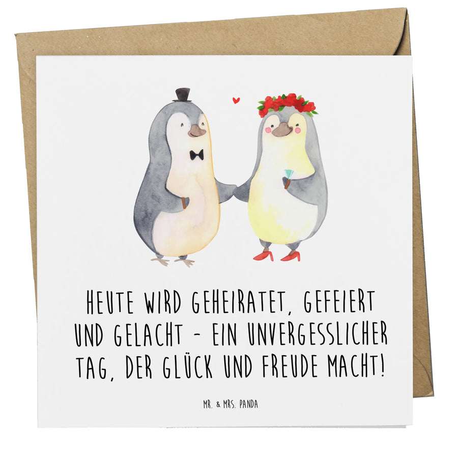 Du suchst nach dem perfekten Geschenk für den schönsten Tag im Leben deiner Liebsten? Unsere Deluxe Karte Hochzeitsfeier aus der zauberhaften HochzeitKollektion von Mr. & Mrs. Panda ist genau das, was du brauchst! Diese wunderschöne und besonders hochwertige quadratische Karte wird garantiert zum Highlight jeder Hochzeitsfeier. Mit dem liebevoll gestalteten Spruch "Heute wird geheiratet, gefeiert und gelacht - ein unvergesslicher Tag, der Glück und Freude macht!" zauberst du ein Lächeln auf die Gesichter von Braut und Bräutigam.