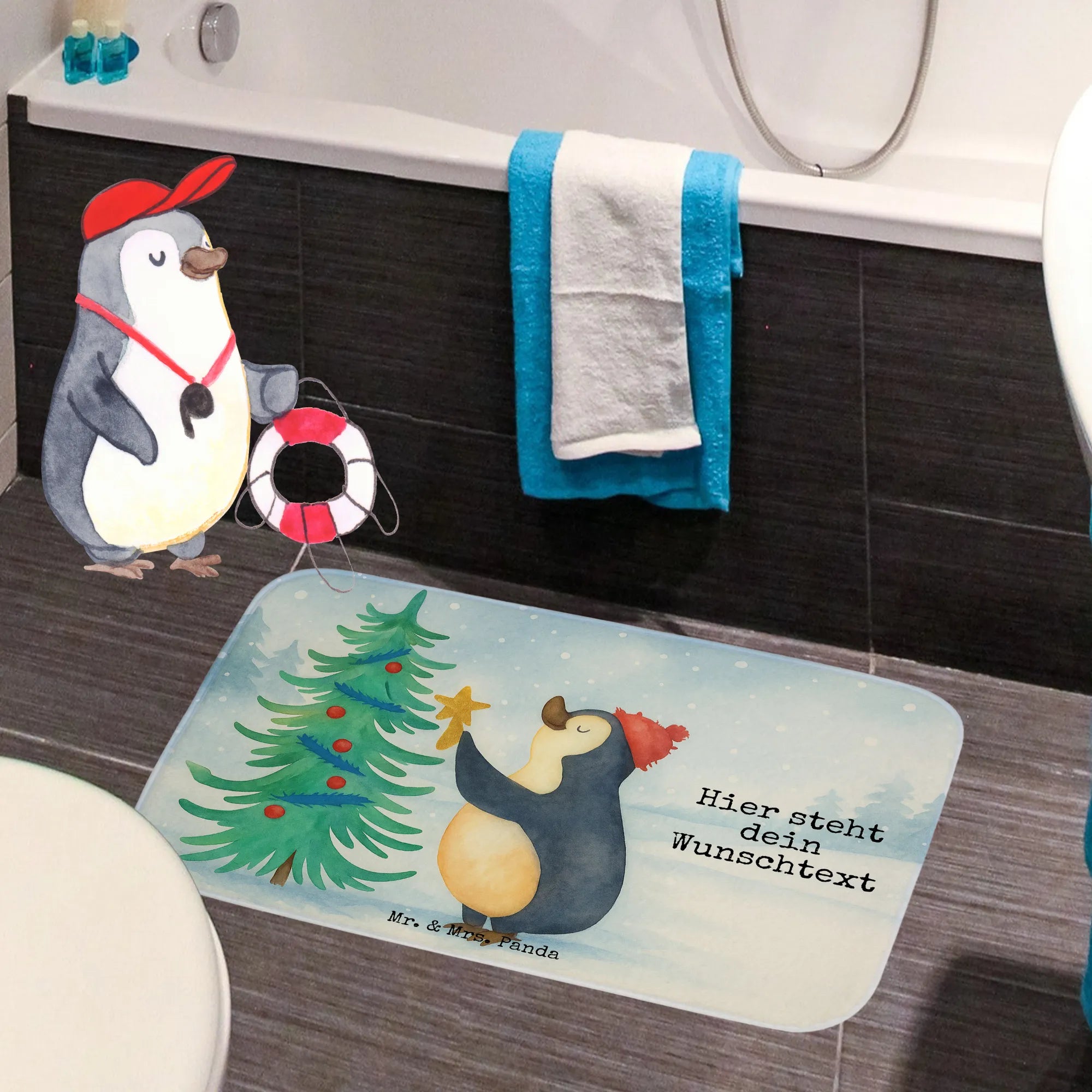 Personalisierte Badematte Pinguin Weihnachtsbaum Design
