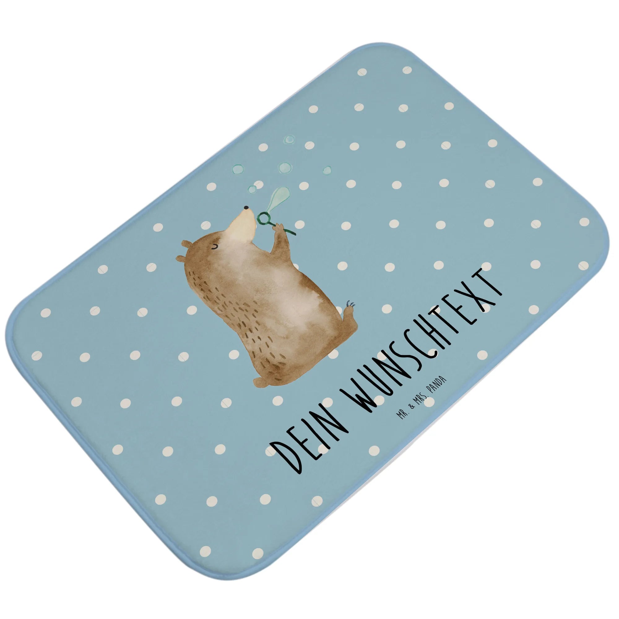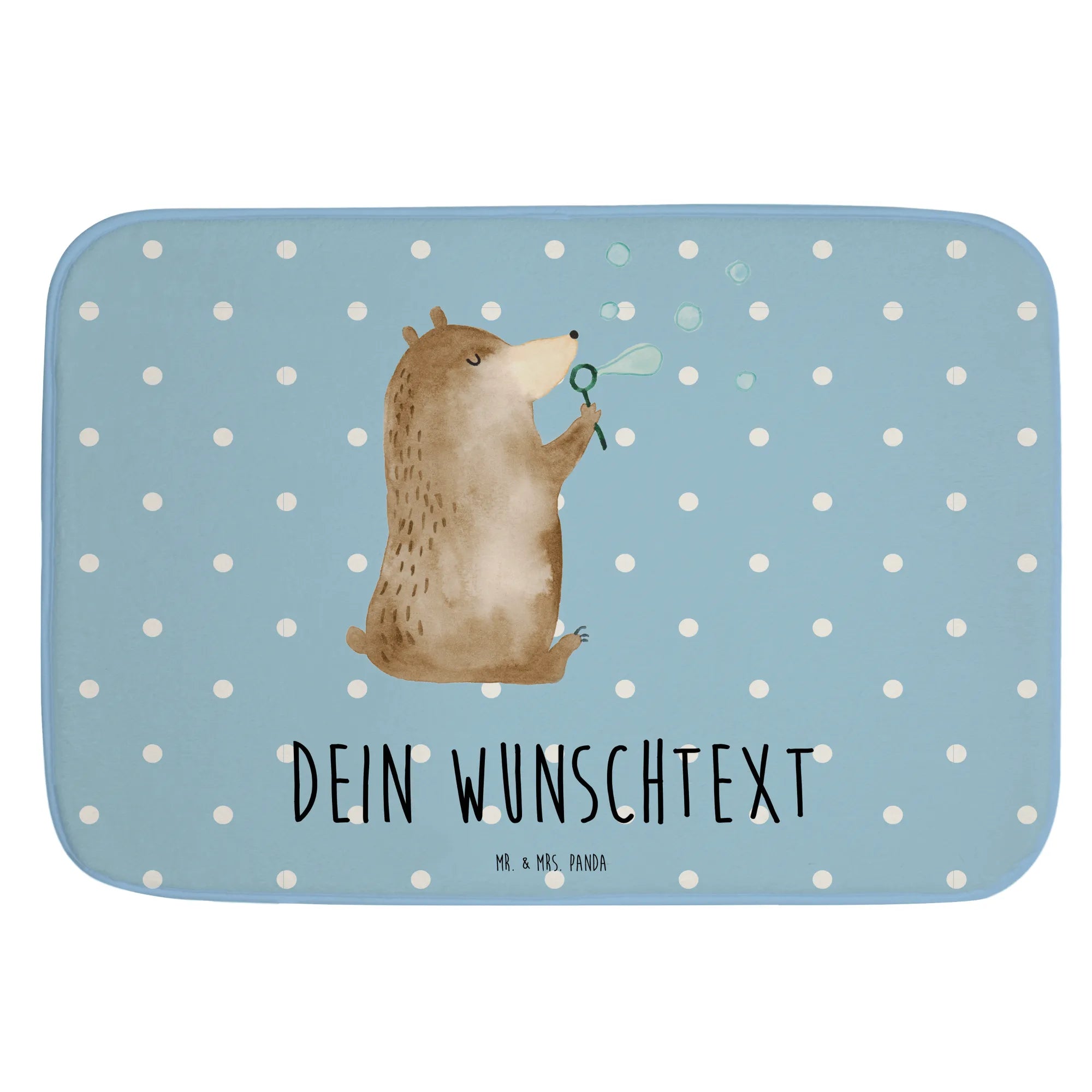 Entdecke die perfekte Mischung aus Gemütlichkeit und Individualität mit unserem personalisierten Badvorleger "Bär Seifenblasen" von Mr. & Mrs. Panda! Dieser wunderschöne Badvorleger ist nicht nur ein echter Hingucker in deinem Badezimmer, sondern sorgt auch für ein wohliges Gefühl unter deinen Füßen.