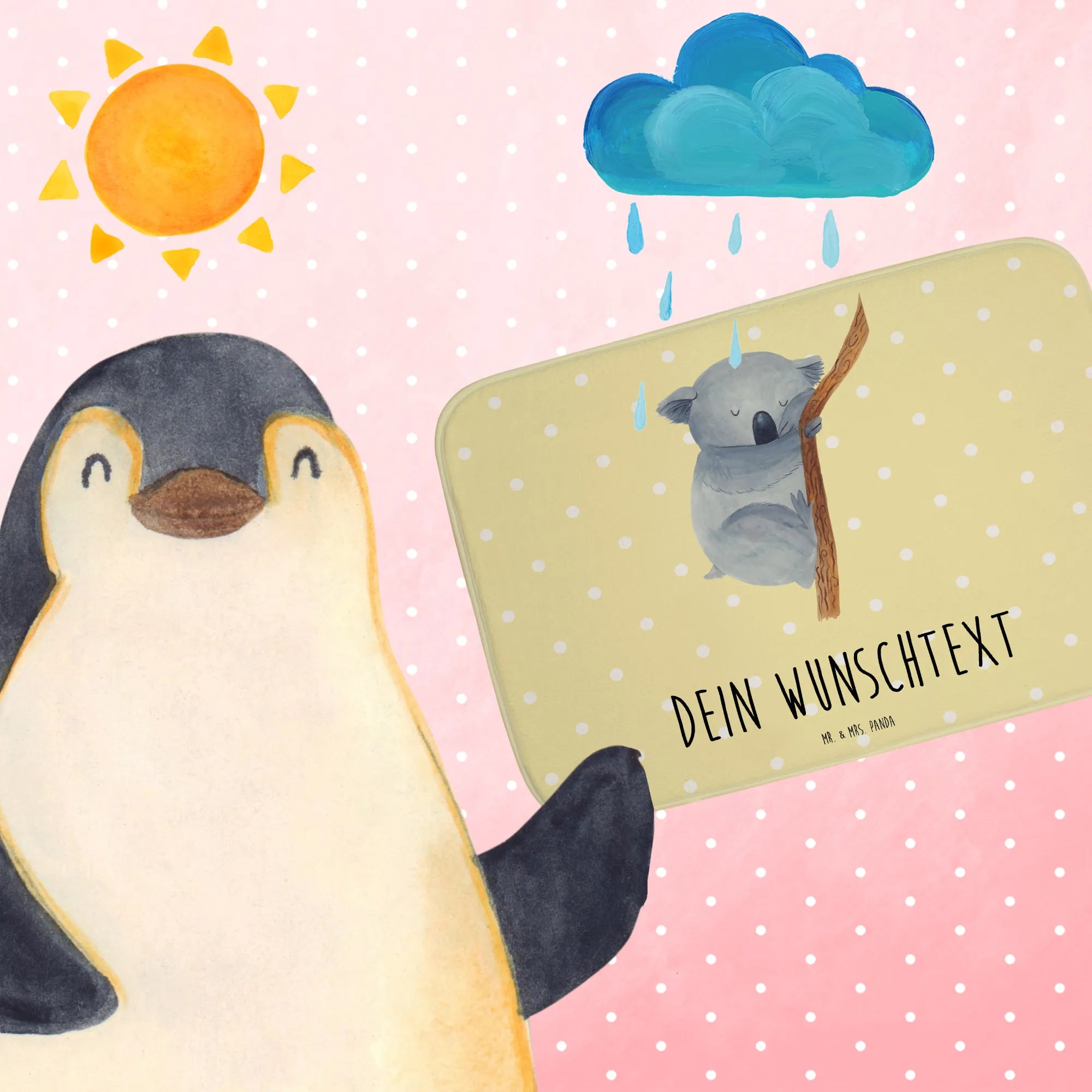 Der personalisierte Badvorleger Koalabär von Mr. & Mrs. Panda ist das perfekte Geschenk für jeden, der sein Badezimmer mit einer Prise Humor und einer Portion Gemütlichkeit verzaubern möchte. Mit einem niedlichen Koala, der sich an einem Ast festhält und sanft schläft, bringt dieser Badvorleger nicht nur gute Laune, sondern auch eine kuschelige Atmosphäre ins Badezimmer. Jeder dieser Badvorleger ist personalisierbar mit deinem Wunschnamen oder einem einzigartigen Text, sodass du ein ganz individuelles und herzlicher Geschenk kreieren kannst.