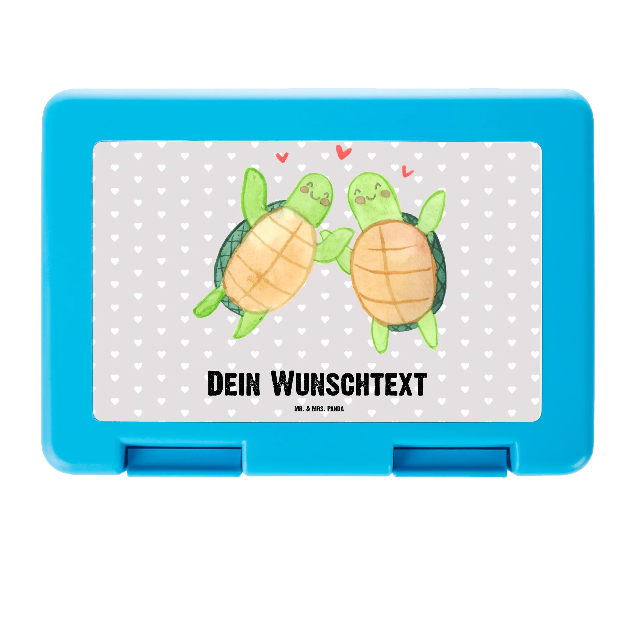 Die personalisierte Brotdose mit dem niedlichen Motiv des Schildkröten Paars aus der Kollektion Liebe von Mr. & Mrs. Panda ist das perfekte Geschenk für alle, die ihre Liebe ausdrücken wollen. Diese liebevoll gestaltete Brotbox zeigt zwei stilisierte Schildkröten, die sich zueinander gewandt haben und mit einem sanften Lächeln sowie lachenden Augen die Zuneigung und Freude verkörpern. Zwischen ihnen schweben kleine, rote Herzen, die die Verbundenheit und das Glück symbolisieren.