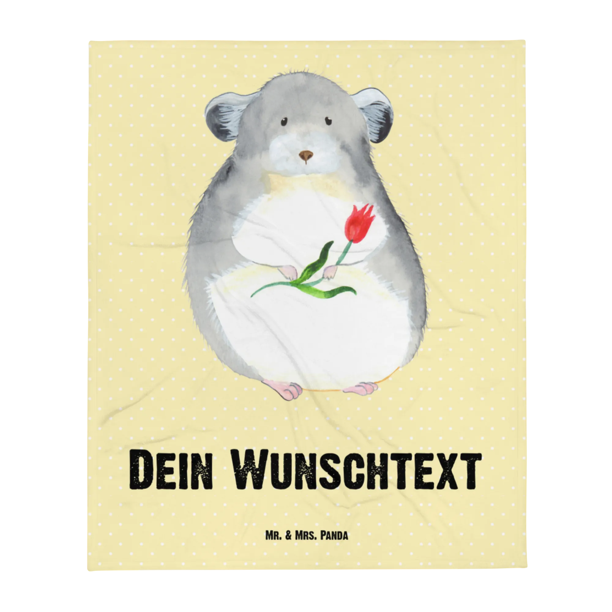 Ob Selbstbeschenkung oder als herzliche Geste für einen lieben Freund – die personalisierte Decke "Chinchilla mit Blume" ist ein Must-Have für jeden Tierliebhaber und einfach immer eine gute Wahl. Erlebe die Kombination aus niedlichem Design, persönlicher Note und kuscheligem Komfort mit Mr. & Mrs. Panda.