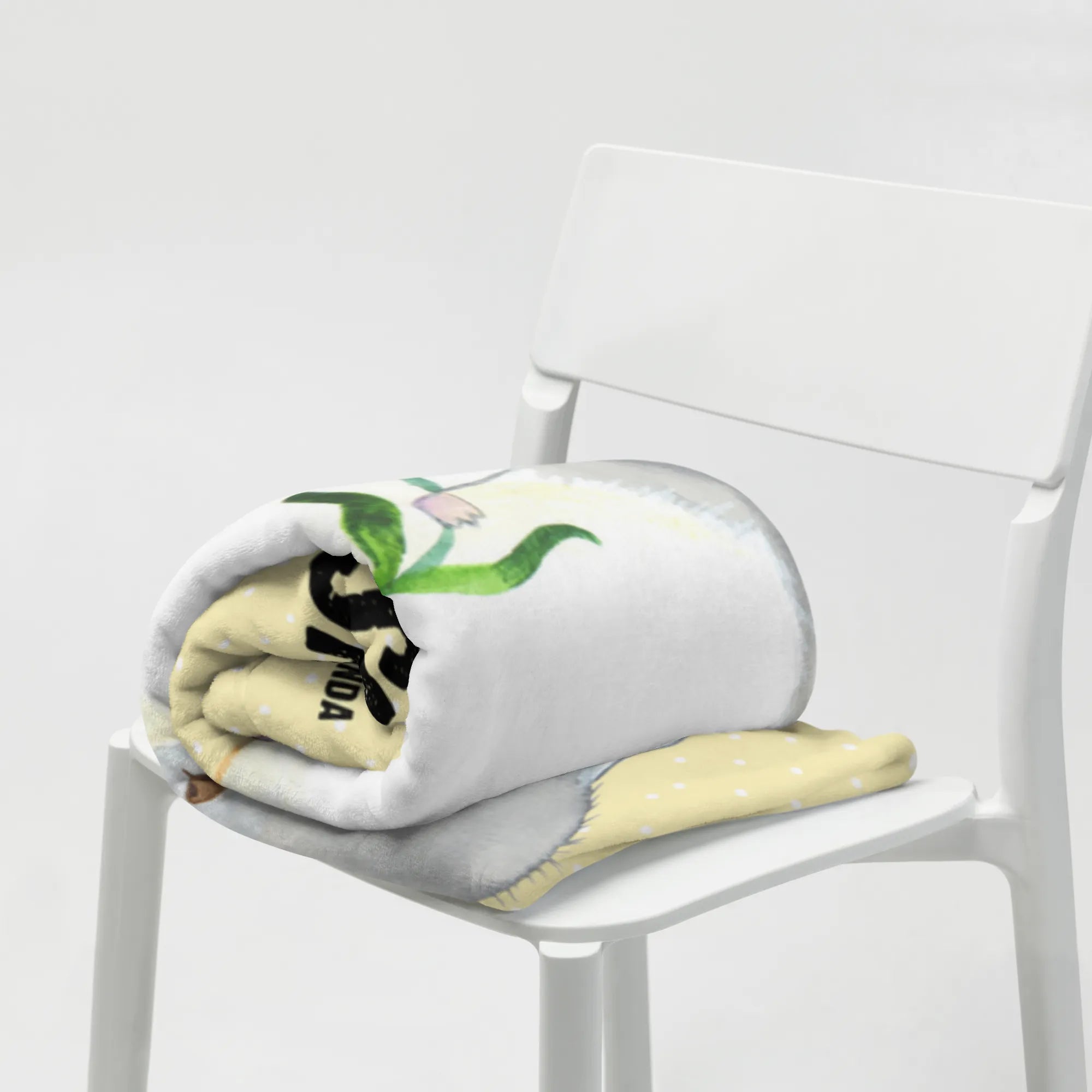 🐼 Personalisiere deine Decke mit einem Namen oder einem Spruch.