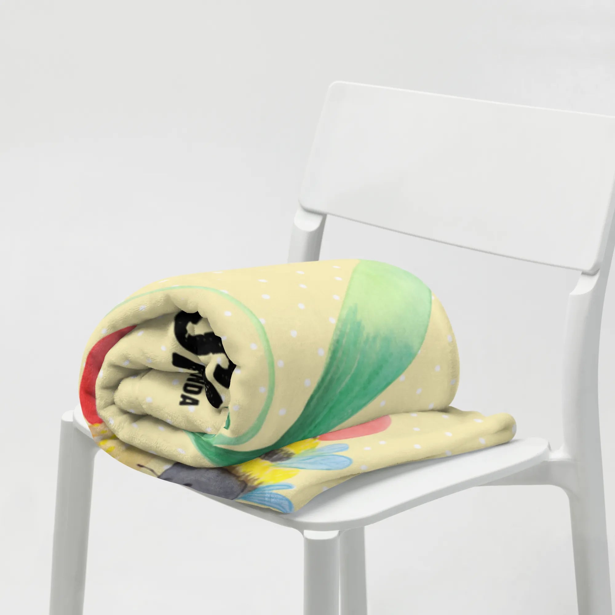 Die personalisierte Decke mit dem süßen Hummel-Blumen-Motiv von Mr. & Mrs. Panda ist das perfekte Geschenk für all diejenigen, die es kuschlig und farbenfroh lieben. Mit dem zauberhaften Spruch "Hat die Blume einen Knick, war die Hummel wohl zu dick" bringt diese Decke nicht nur Wärme ins Zuhause, sondern auch ein Lächeln auf die Gesichter der Beschenkten.