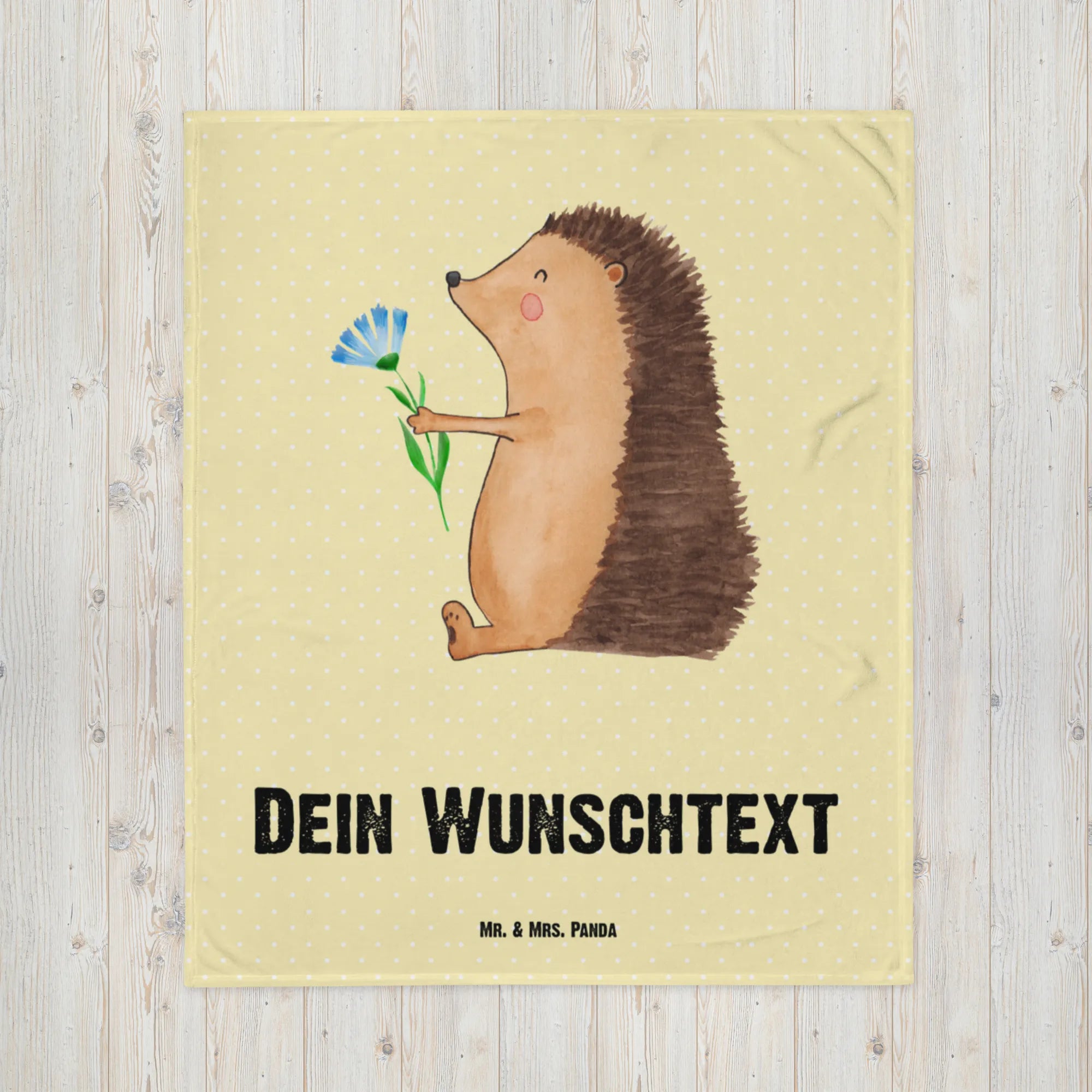 Entdecke die personalisierte Decke mit dem niedlichen Igel-Motiv aus der Small World Kollektion von Mr. & Mrs. Panda! Diese hochwertige Kuscheldecke bringt nicht nur Wärme, sondern auch ein Lächeln auf dein Gesicht. Der putzige Igel mit einer farbenfrohen Blume in der Hand symbolisiert Lebensfreude und Hoffnung – ideal für alle, die eine Genesung wünschen oder jemandem gute Besserung schicken möchten.