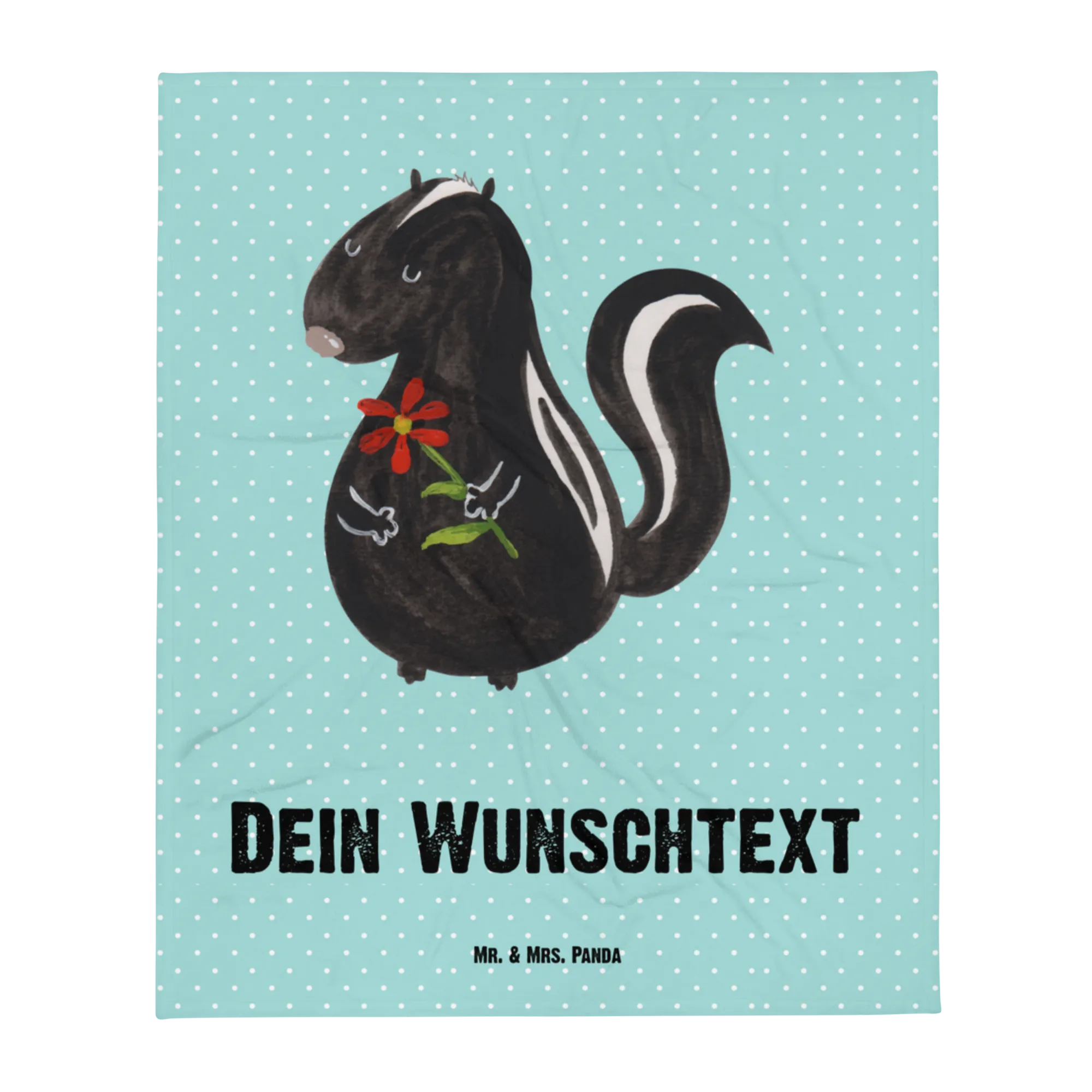 Entdecke die zauberhafte personalisierte Decke "Stinktier Blume" von Mr. & Mrs. Panda! Diese kuschelige Decke begeistert mit einem einzigartigen Aquarellmotiv, das ein niedliches Stinktier mit einer bunten Blumenkrone zeigt. Perfekt für Tagträumer, die es lieben, in ihre eigenen Träume abzutauchen!