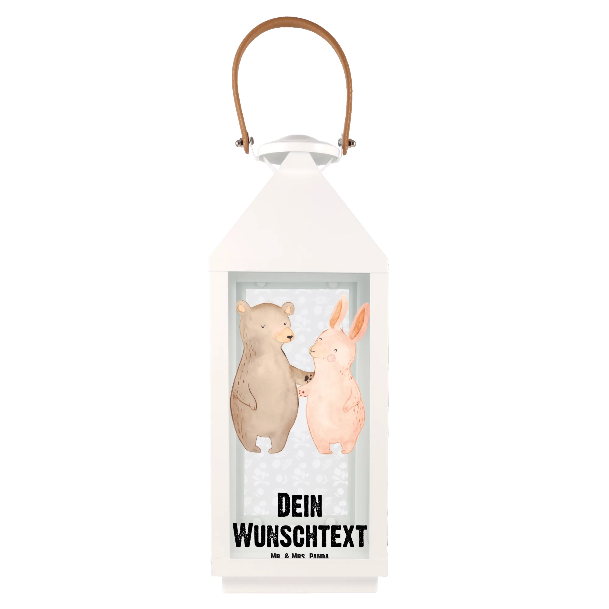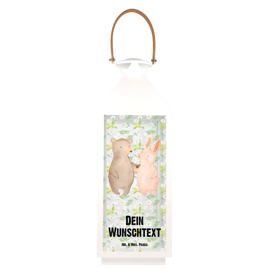 Entdecke die perfekte Geschenkidee mit unserer personalisierten Deko Laterne „Bär Hase Umarmen“ aus der Kollektion Liebe von Mr. & Mrs. Panda!