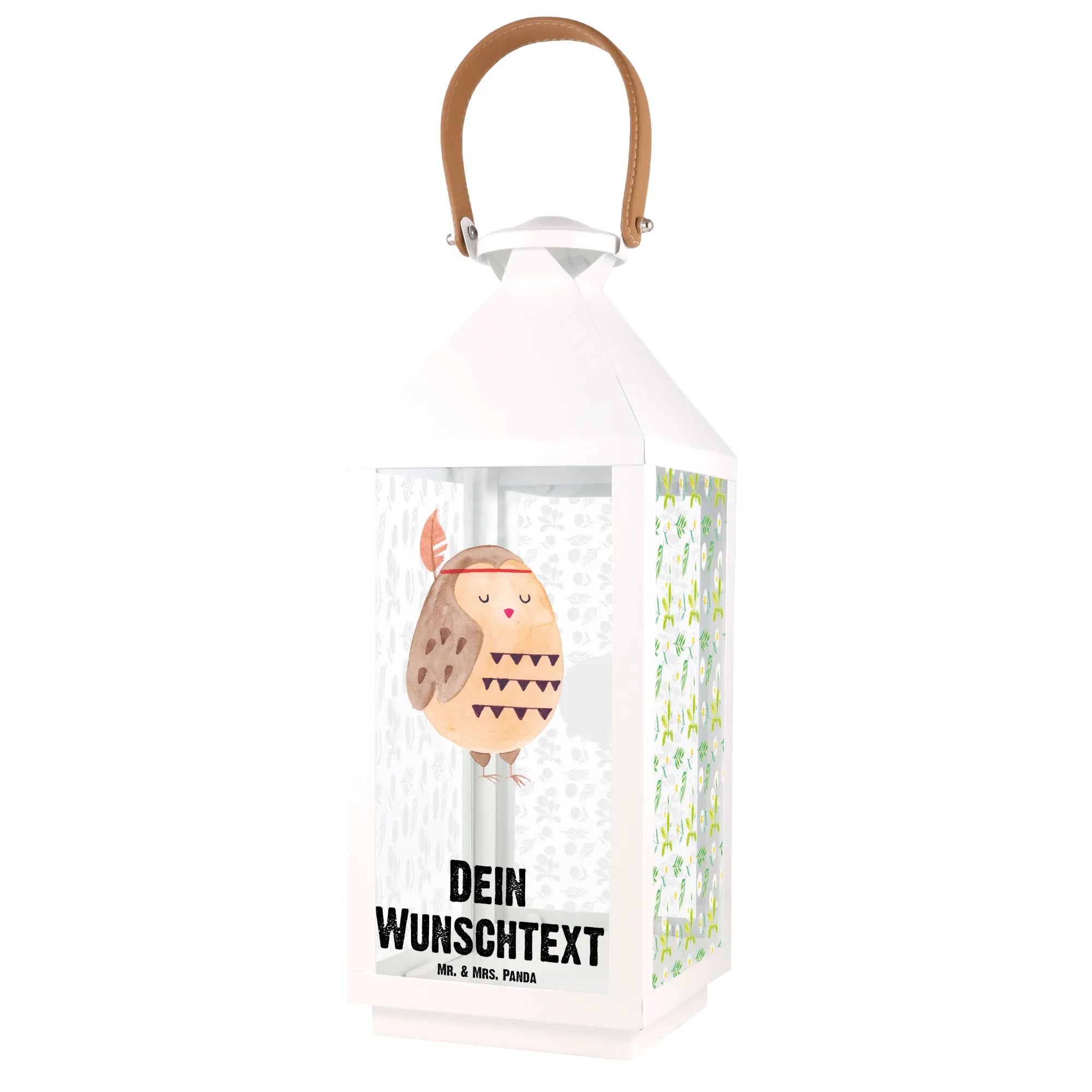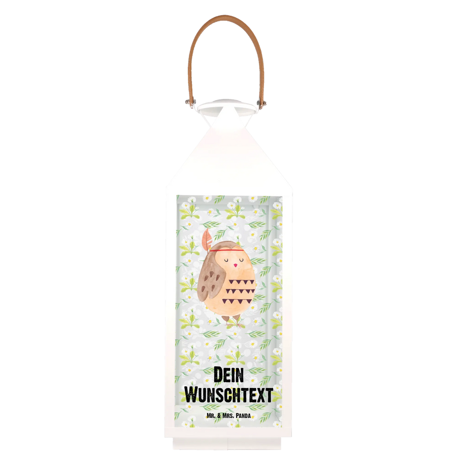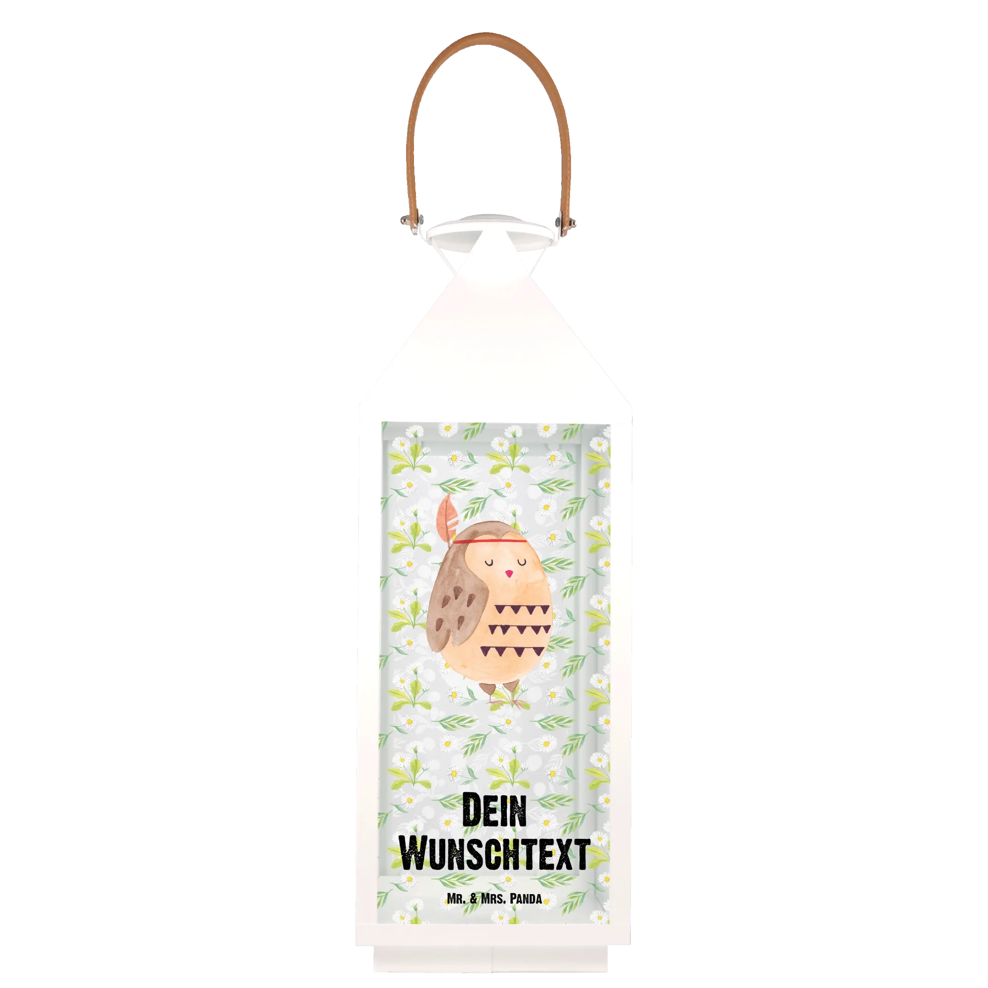 Personalisierte Deko Laterne Eule Federschmuck - XL
