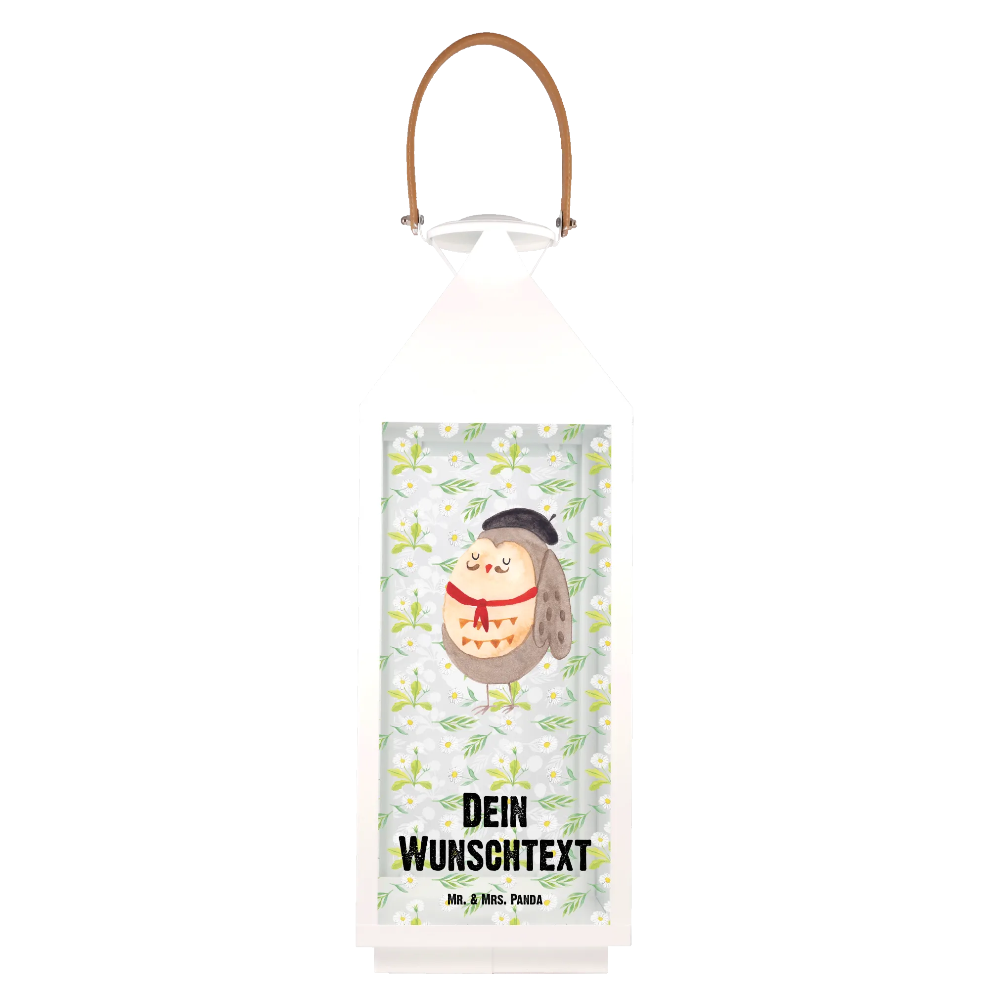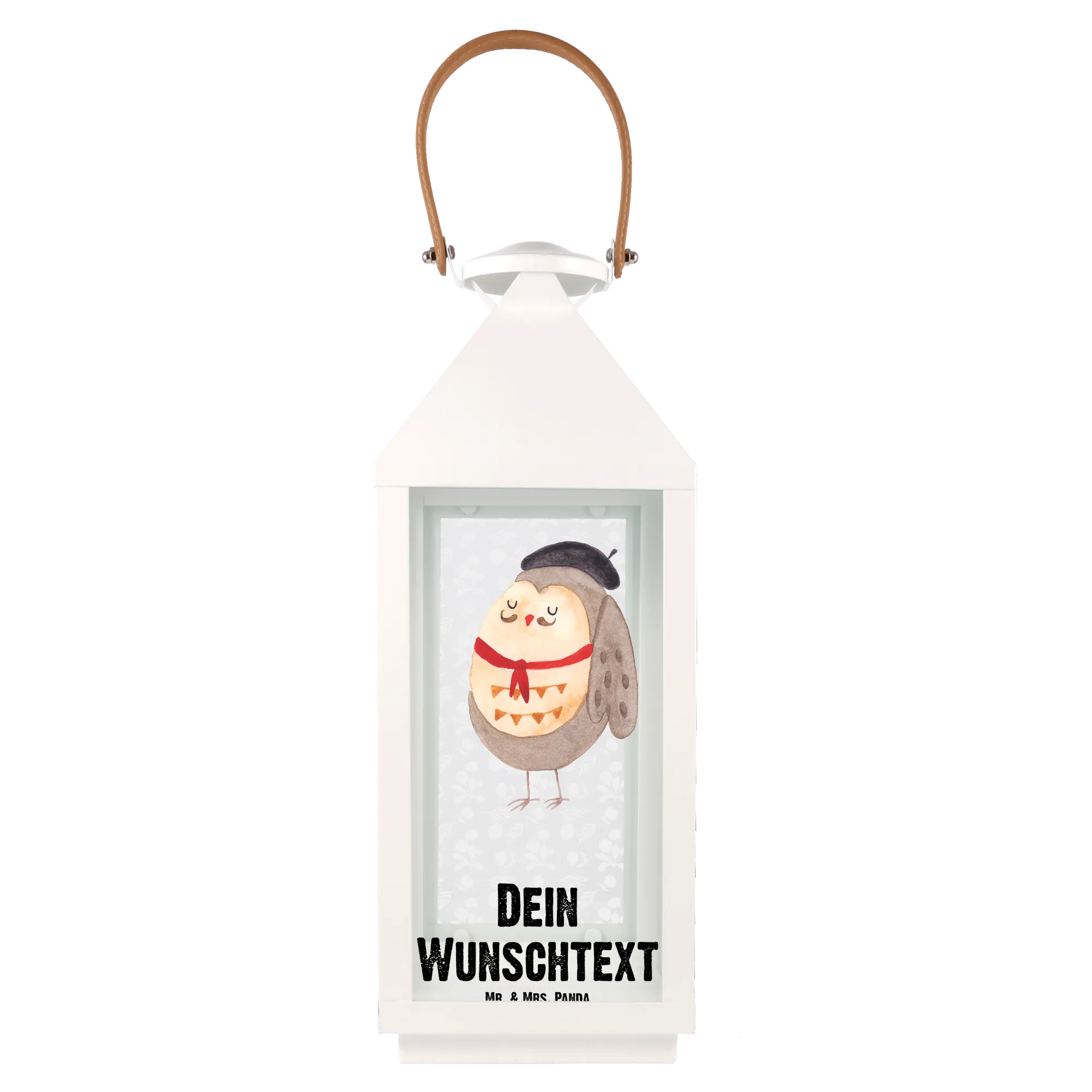 Entdecke die wunderschöne, personalisierte Deko Laterne "Eule Französisch" von Mr. & Mrs. Panda! Diese bezaubernde Laterne ist mehr als nur eine Lichtquelle; sie bringt ein Stück Frankreich in dein Zuhause. Mit dem charmanten Motiv einer Eule im französischen Look, die einen Hut, eine Fliege und einen Schnurrbart trägt, zaubert sie jedem ein Lächeln ins Gesicht.