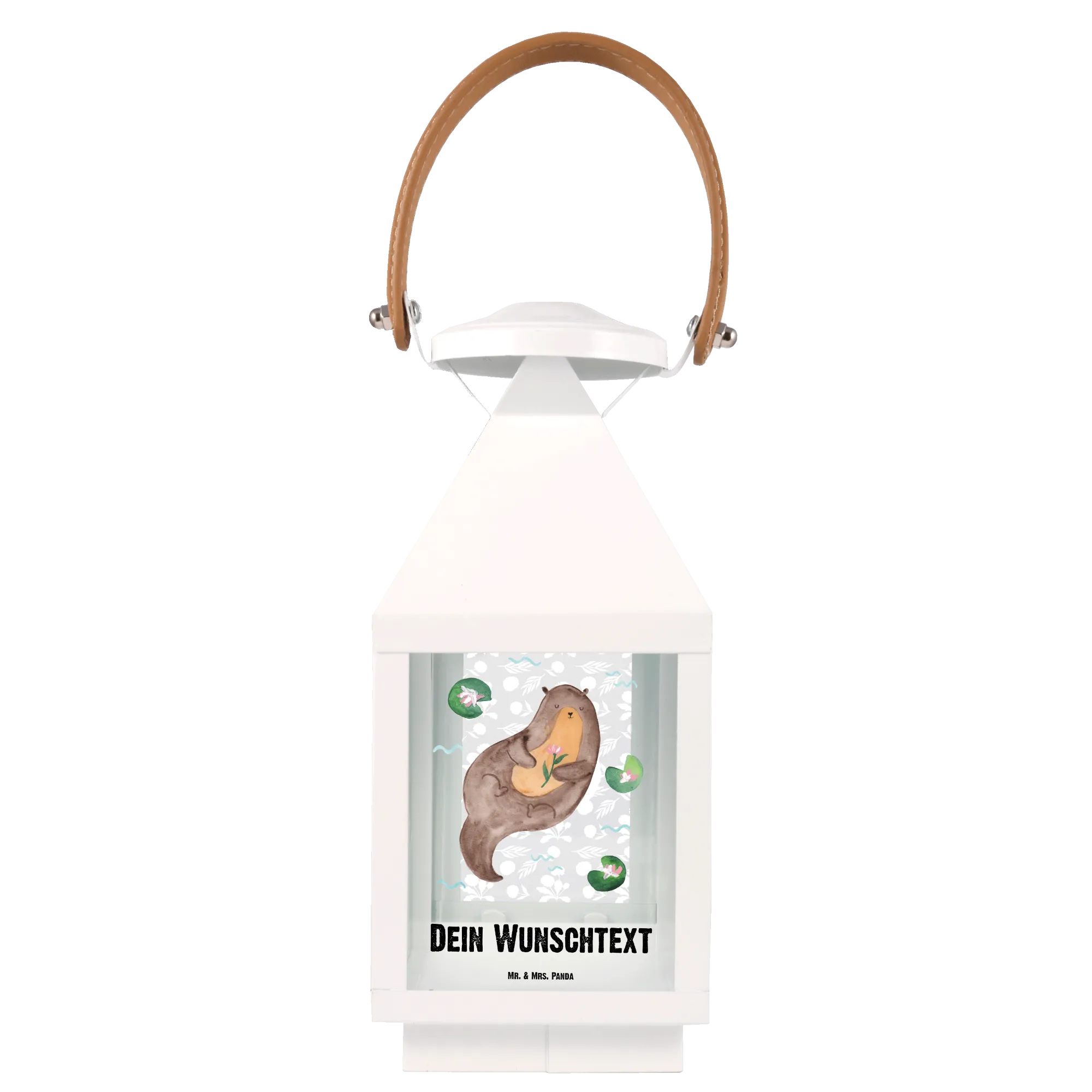 Personalisierte Deko Laterne Otter mit Seerose – Mr. & Mrs. Panda
