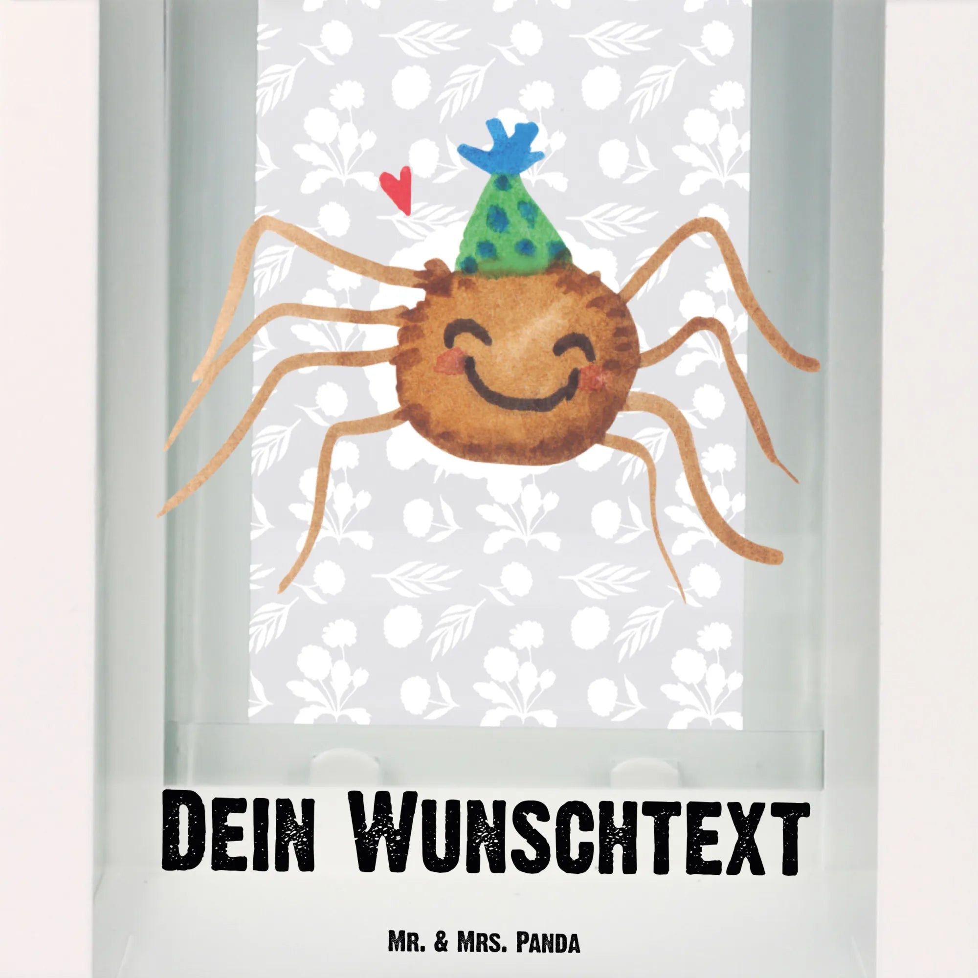 Die personalisierte Deko Laterne Spinne Agathe Party von Mr. & Mrs. Panda ist mehr als nur ein schönes Licht für deinen Garten – sie ist ein Ausdruck von Lebensfreude und Selbstliebe! Diese einzigartige Laterne sorgt für eine zauberhafte Atmosphäre, egal ob auf der Terrasse, dem Balkon oder drinnen. Durch das liebevoll handgezeichnete Motiv der Spinne Agathe, die mit einem fröhlichen Partyhut strahlt, verbreitest du nicht nur Licht, sondern auch Glück.