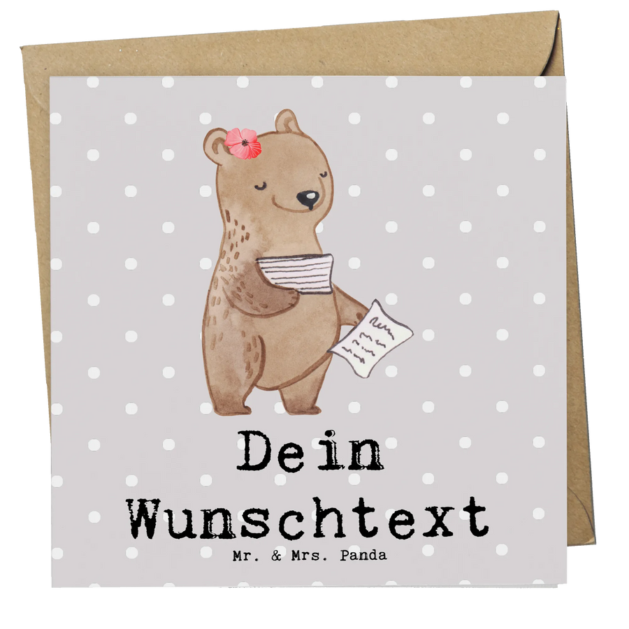 Die personalisierte Deluxe Karte 'Bürokauffrau mit Herz' von Mr. & Mrs. Panda ist das perfekte Geschenk für alle, die das Büroleben lieben! Mit ihrem süßen Motiv, das eine fröhliche Bürokauffrau zeigt, die stolz ihren Job liebt, bringt diese Karte ein Lächeln auf jedes Gesicht. Egal, ob zum Geburtstag, zur Hochzeit oder als Dankeschön für besonders fleißige Arbeitskolleginnen – diese Karte ist für jede Gelegenheit die ideale Wahl.