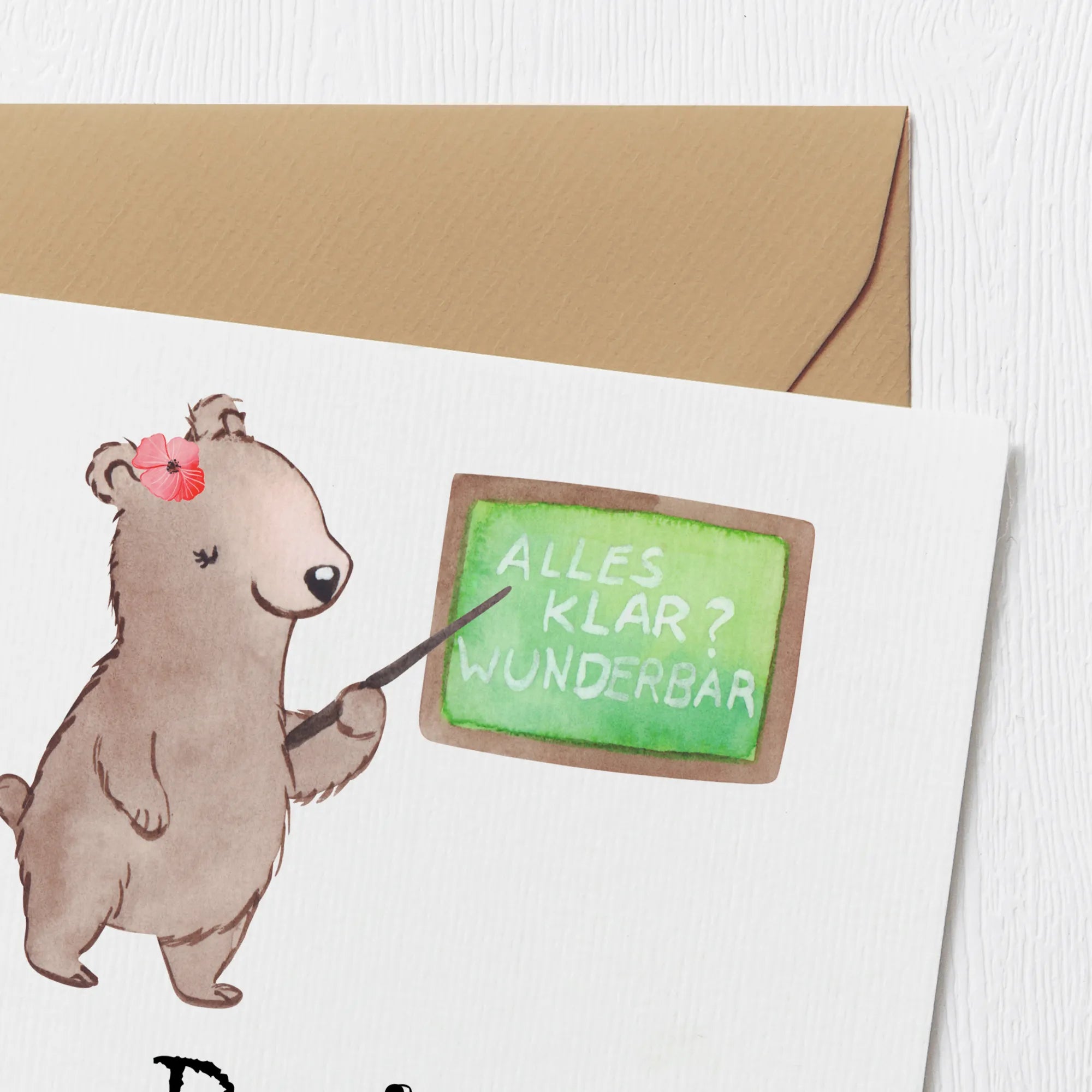 Mit dem liebevoll gestalteten Motiv einer niedlichen Bärendame, die vor einer Schultafel steht, verkörpert diese Karte die Leidenschaft und Hingabe, die eine Deutschlehrerin in ihrer Arbeit steckt.