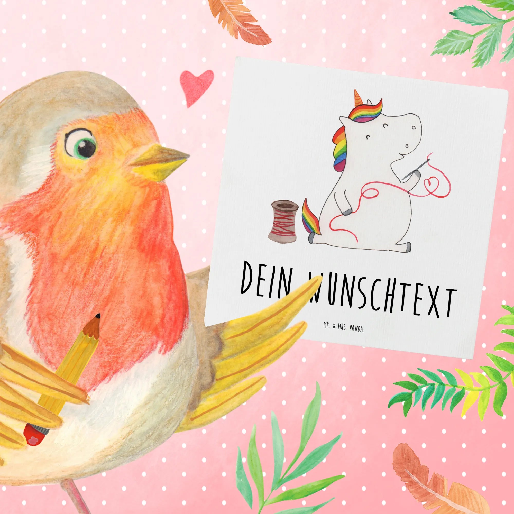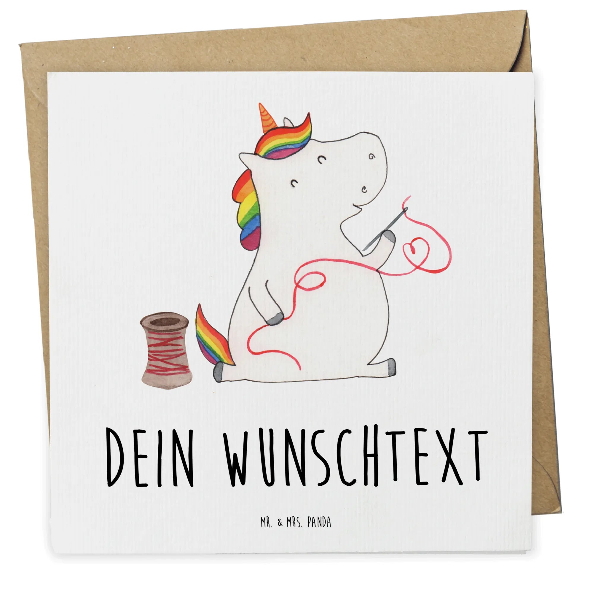 Die Personalisierte Deluxe Karte Einhorn Näherin aus der zauberhaften Einhorn - Kollektion von Mr. & Mrs. Panda ist das perfekte Geschenk für kreative Seelen und Einhorn-Liebhaber. Egal ob für den Geburtstag einer Freundin, zur Hochzeit oder als liebevolle Einladung – diese einladende Karte zieht alle in ihren Bann! Mit einem süßen Einhorn, das liebevoll mit Nadel und Faden zaubert, und dem herzlichen Slogan "Zuhause ist, wo meine Nähmaschine rattert", zaubert sie ein Lächeln auf jedes Gesicht.