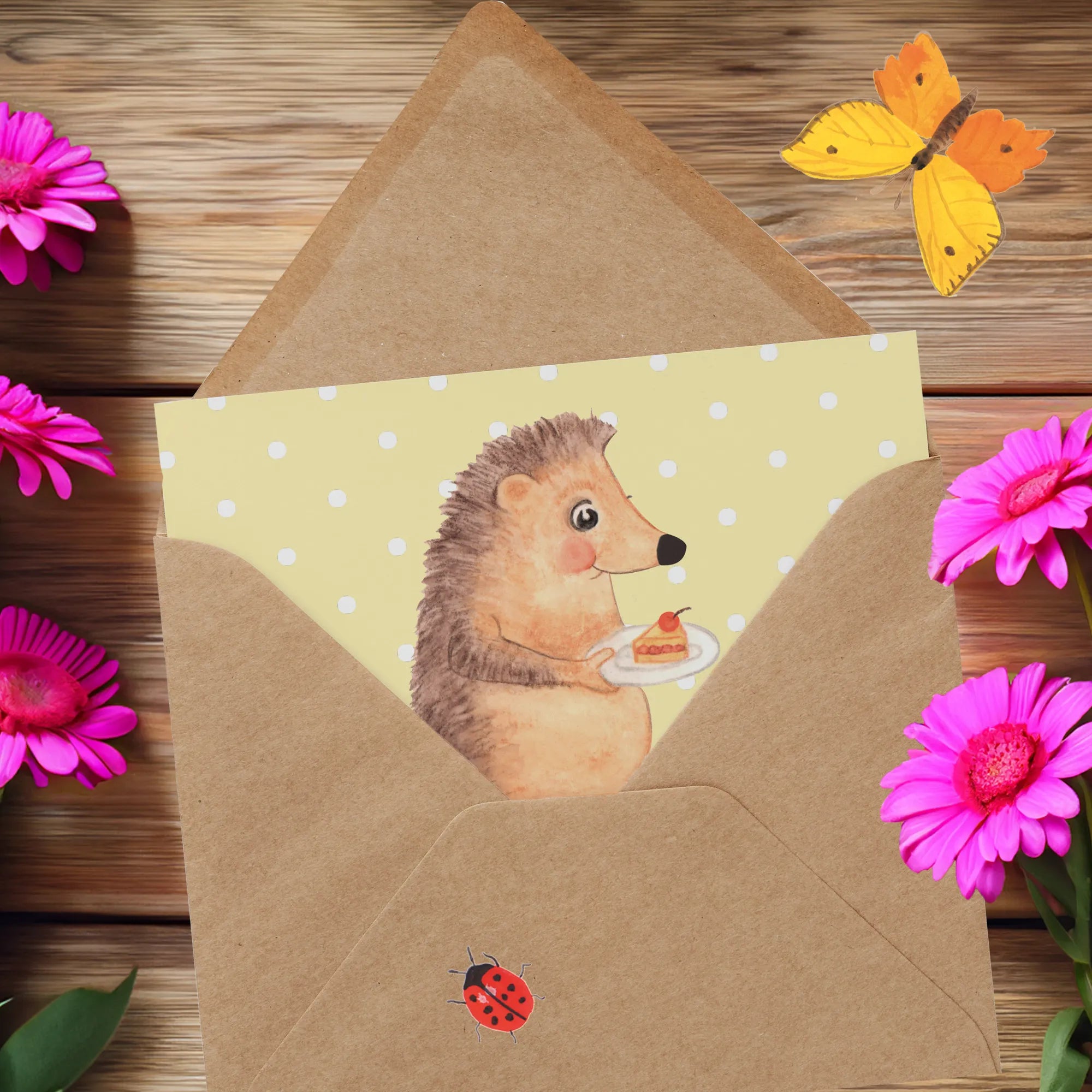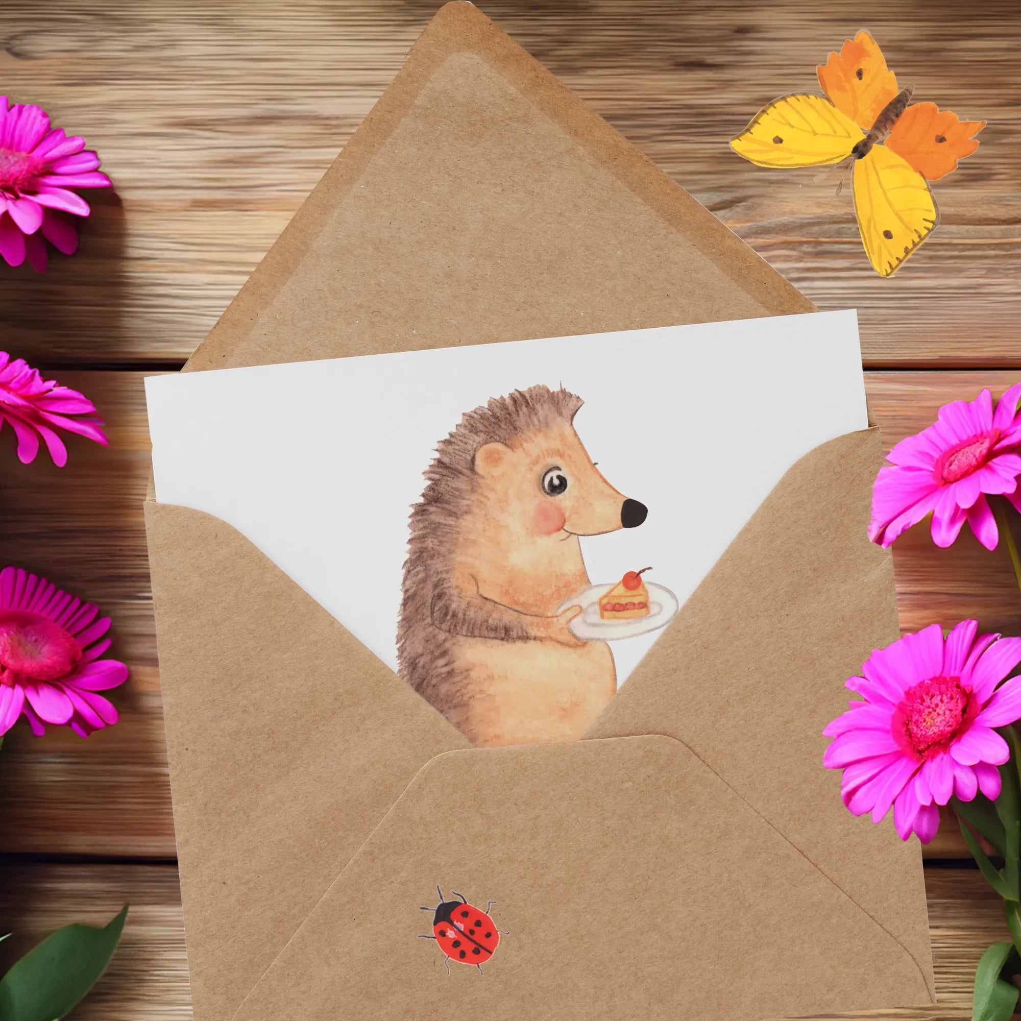 Mit dem bezaubernden Motiv des Igel mit Kuchenstück und dem witzigen Spruch "Ich esse Kuchen, weil heute irgendjemand Geburtstag hat", ist diese Karte das perfekte Geschenk für Geburtstagsfeiern, Hochzeiten und andere Feierlichkeiten.