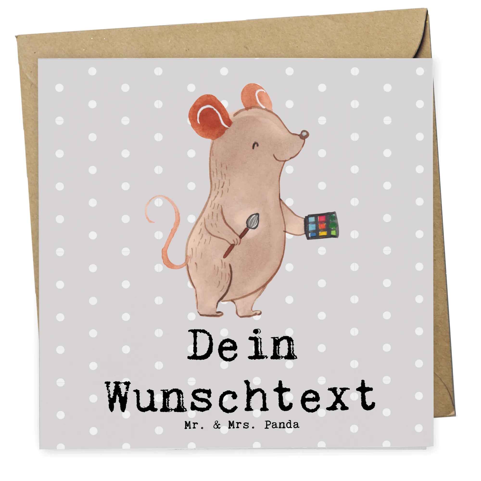 Die personalisierte Deluxe Karte "Maskenbildner mit Herz" von Mr. & Mrs. Panda ist das perfekte Geschenk für alle angehenden und erfahrenen Maskenbildner! Mit einem liebevoll gestalteten Motiv, das eine süße Maus mit einer Krone, Lidschatten und einem Schminkpinsel zeigt, sorgt diese Karte für große Freude. Der Spruch "Du bist nur ein halber Mensch, wenn du kein Maskenbildner bist" bringt das Lächeln direkt ins Gesicht. Ob zur Eröffnung eines Beauty Salons, als Dankeschön für einen tollen Kollegen oder einfach zur Belohnung für eine gelungene Ausbildung - diese Karte ist besonders und einzigartig und lässt sich mit deinem Wunschnamen oder Wunschtext individuell gestalten.