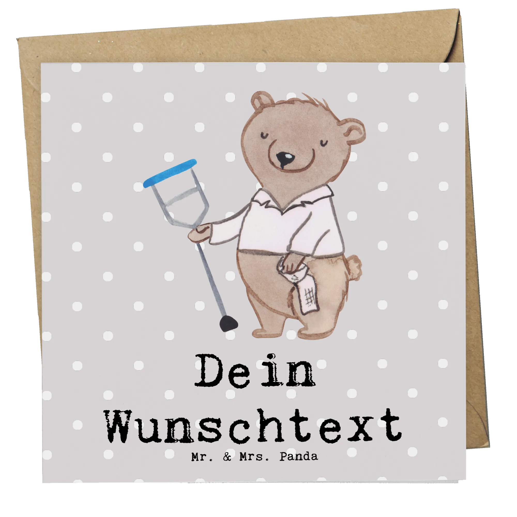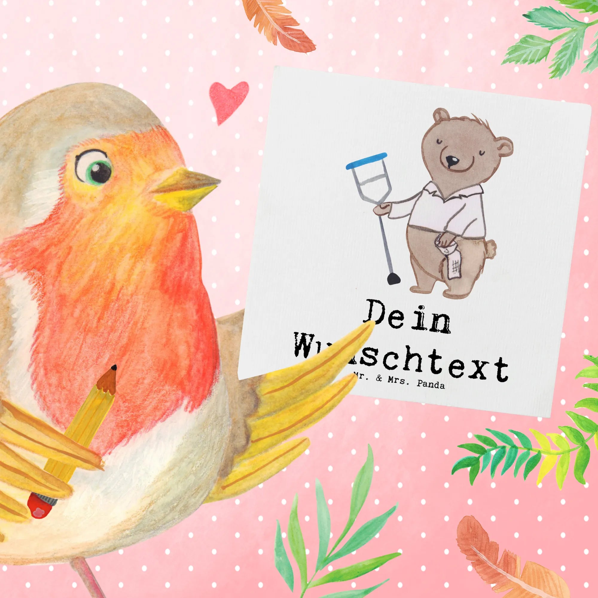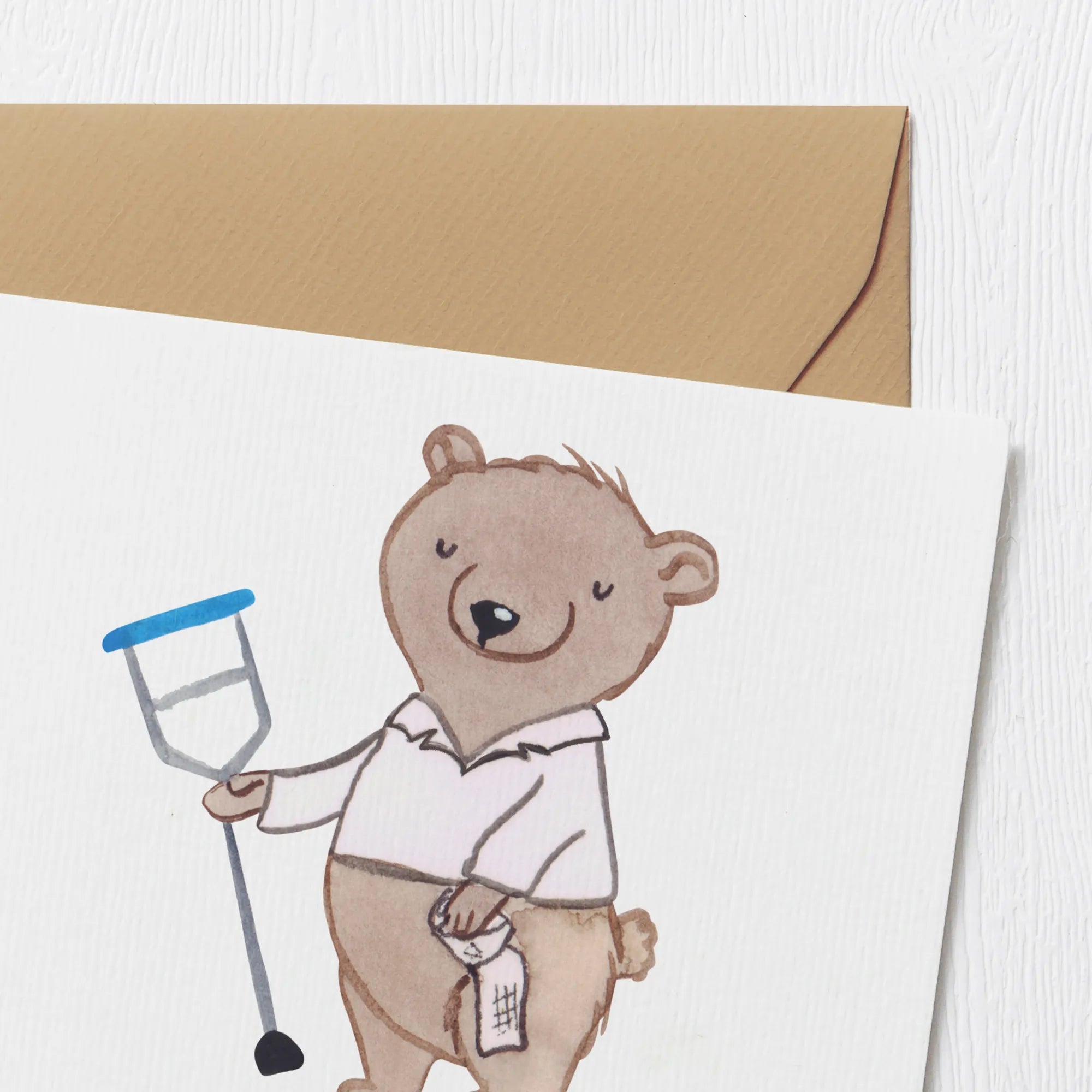 Die hochwertige Karte trägt das niedliche Motiv eines Bären, der einer anderen Figur eine Krücke reicht, und unterstreicht so den herzlichen und professionellen Umgang, den Orthopäden mit ihren Patienten haben. Diese personalisierte Karte ermöglicht es dir, den Namen des Empfängers oder eine besondere Nachricht einzufügen, um deine Glückwünsche individuell zu gestalten.