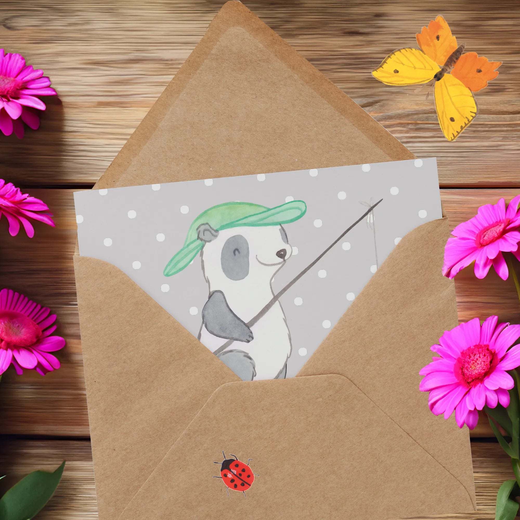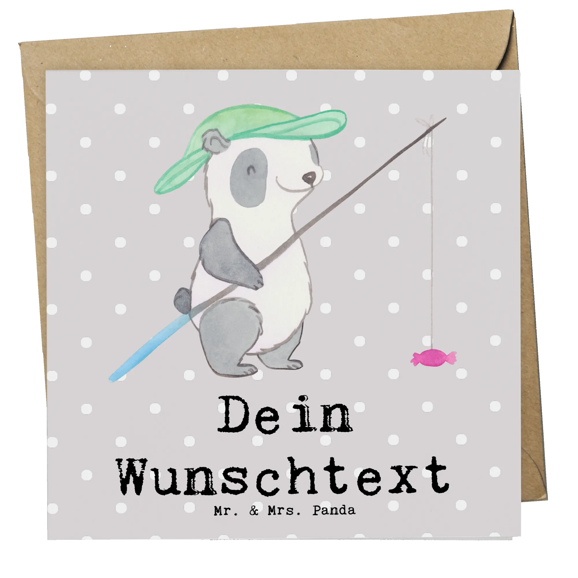 Personalisierte Deluxe Karte Panda Angeln - Grau Pastell