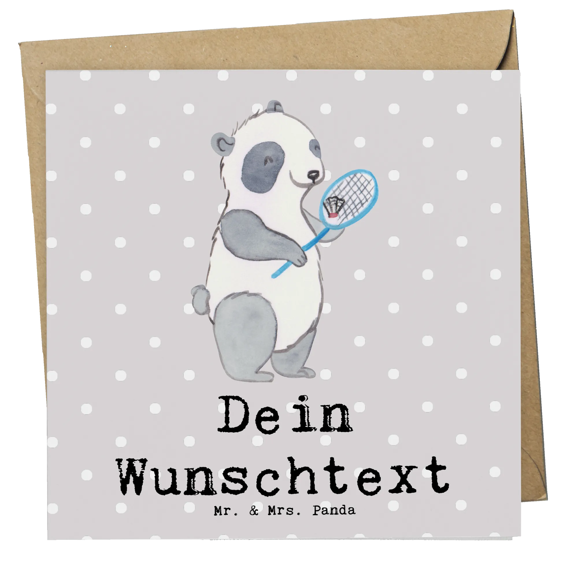 Die personalisierte Deluxe Karte mit dem wunderschönen Motiv Panda Badminton ist das perfekte Geschenk für alle Sportliebhaber und Badminton-Enthusiasten! Egal ob zum Geburtstag, für eine Hochzeit oder einfach als kleine Aufmerksamkeit, diese hochwertige Klappkarte bringt Freude und begeistert mit ihrem liebevollen Design. Das niedliche Panda-Motiv mit dem Slogan 'Es gibt schlechte Tage, und es gibt Tage, an denen ich Badminton spiele' macht die Karte zu einer einzigartigen Wahl für jeden, der die Sportart liebt.