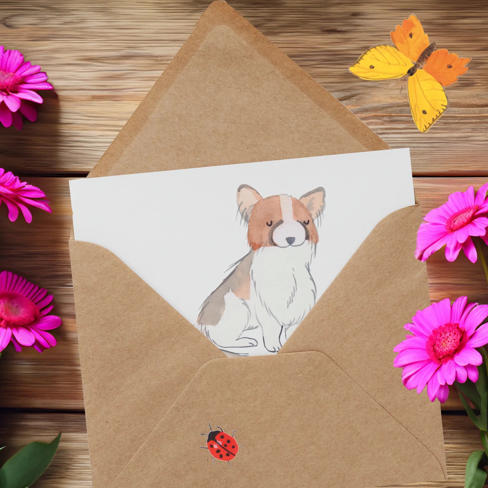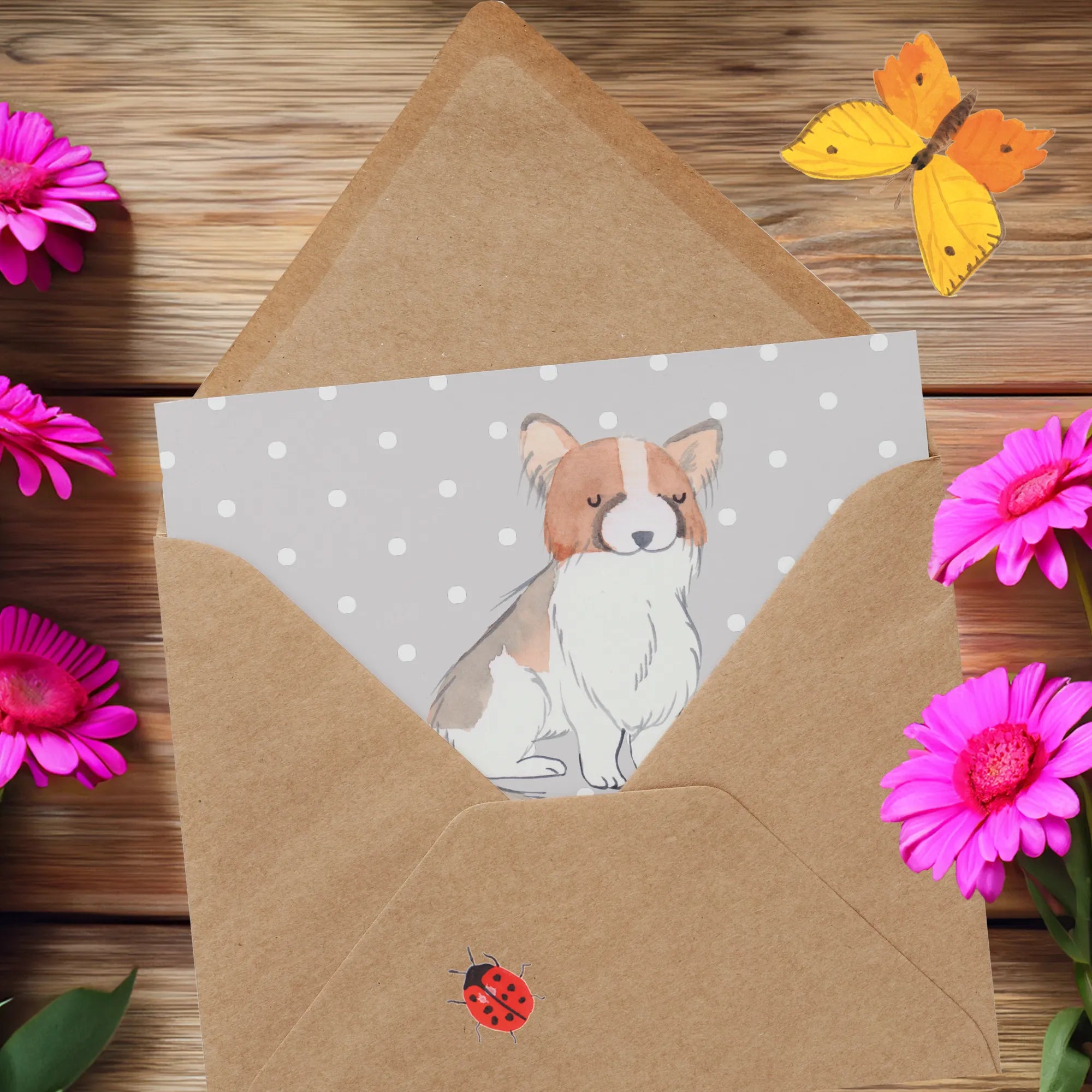 Die personalisierte Deluxe Karte 'Papillon Lebensretter' von Mr. & Mrs. Panda ist das ideale Geschenk für alle Tierliebhaber und Hundebesitzer. Mit einem zarten und liebevollen Aquarell-Motiv eines Papillons, der auf der Vorderseite der Karte abgebildet ist, sorgt diese Glückwunschkarte für besondere Freude. Der Papillon, bekannt für seine großen, schmetterlingsartigen Ohren und den ausgeglichenen Charakter, symbolisiert treue Freundschaft und bedingungslose Liebe. Jeder Hundebesitzer kann sich sicherlich mit dem Slogan "Mein Lebensretter ist ein Papillon" identifizieren und wird sich über diese persönliche Note freuen.