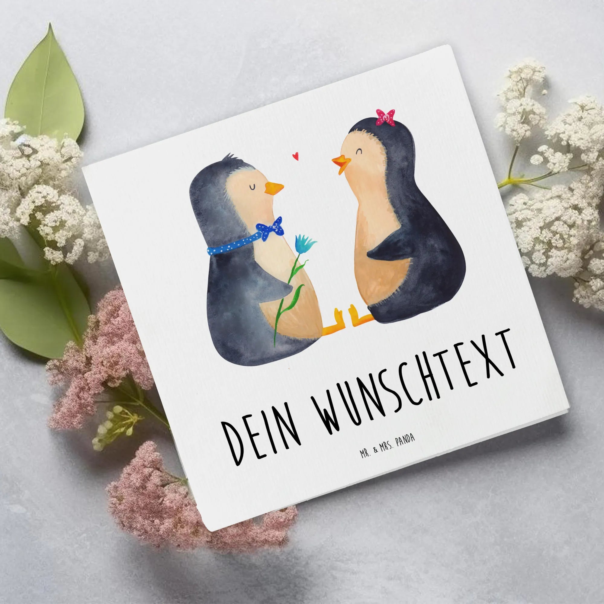 Personalisierte Deluxe Karte Pinguin Pärchen - Weiß