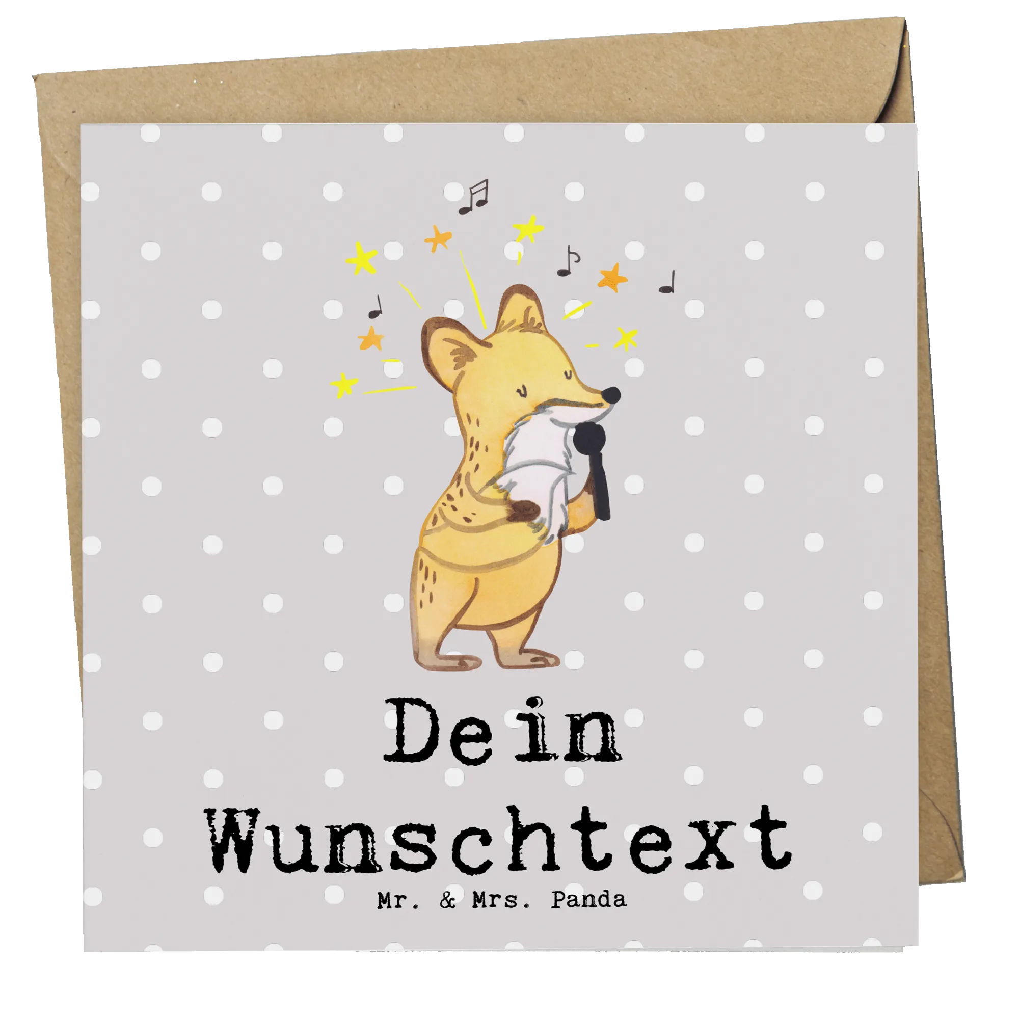 Mit ihrem bezaubernden Motiv eines singenden Fuchses berührt sie das Herz und sorgt für strahlende Gesichter. Die Karte lässt sich ganz individuell personalisieren, indem du einfach deinen Wunschtext oder deinen Namen eingibst. Mit einer praktischen Größe von 140 mm x 140 mm ist die Karte perfekt geeignet, um sie in einen edlen Umschlag zu stecken und zu verschenken.