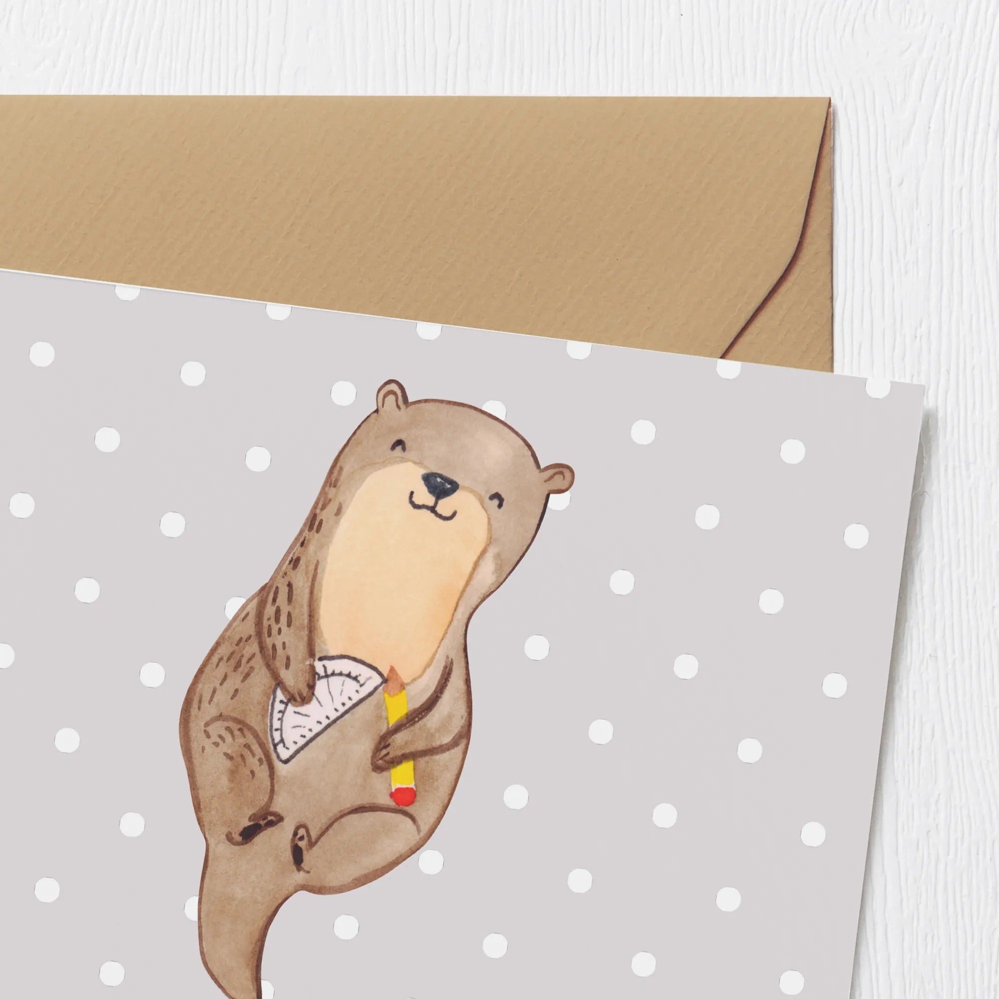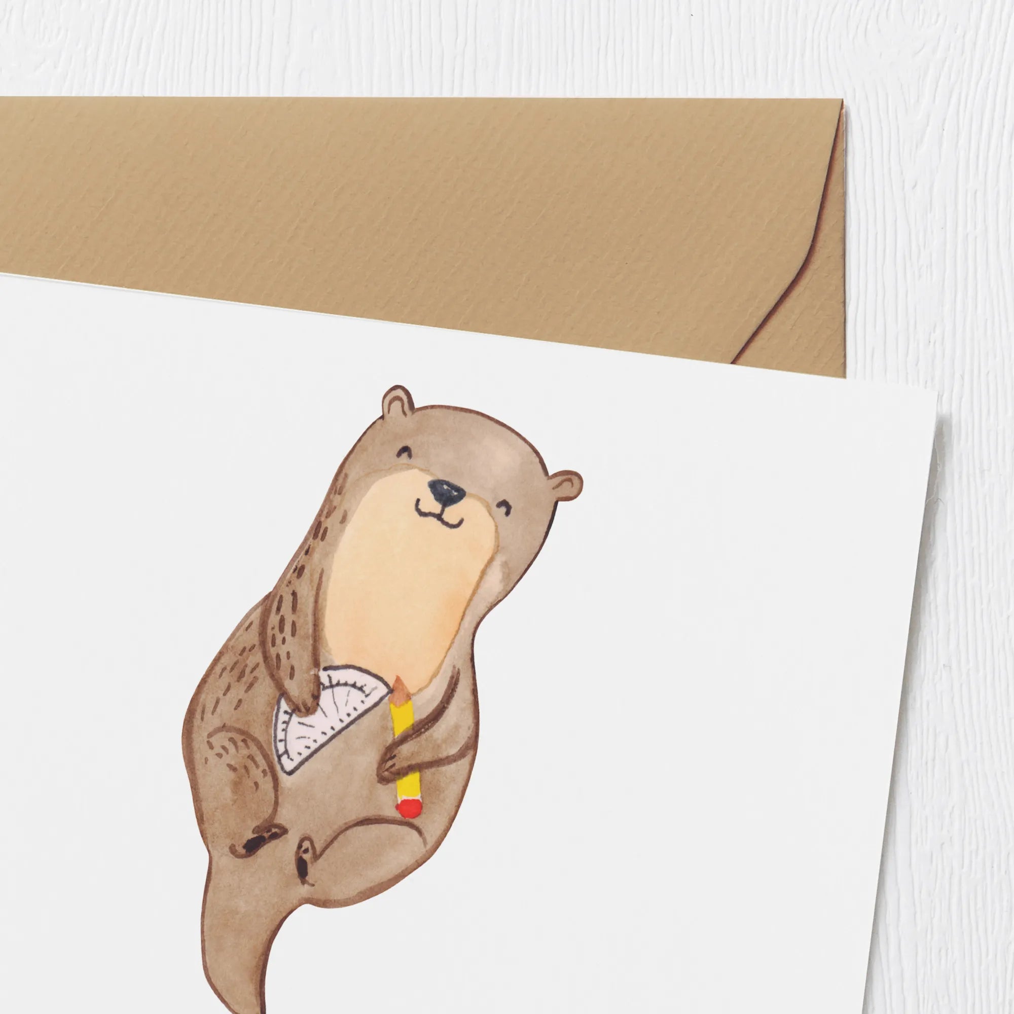 Die personalisierte Deluxe Karte "Technischer Zeichner mit Herz" von Mr. & Mrs. Panda ist das perfekte Geschenk für alle, die in der technischen Zeichnung tätig sind. Egal ob zu einem Geburtstag, Berufsjubiläum oder einfach als Dankeschön – diese Karte bringt Freude und eine persönliche Note. Mit einem herzigen Otter, der ein Lineal und einen Bleistift hält, sorgt das einzigartige Design für Begeisterung.