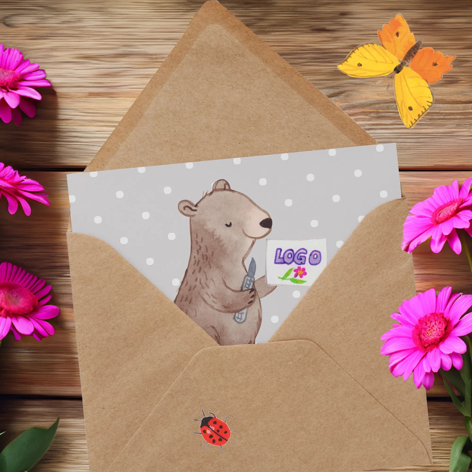 Die personalisierte Deluxe Karte "Werbetechniker mit Herz" aus der Kollektion Berufe von Mr. & Mrs. Panda ist das perfekte Geschenk für jeden Werbetechniker oder kreativen Kopf in Deinem Leben! Diese exquisite Karte vereint Stil und Persönlichkeit – ideal für unvergessliche Grüße und glückliche Wünsche.
