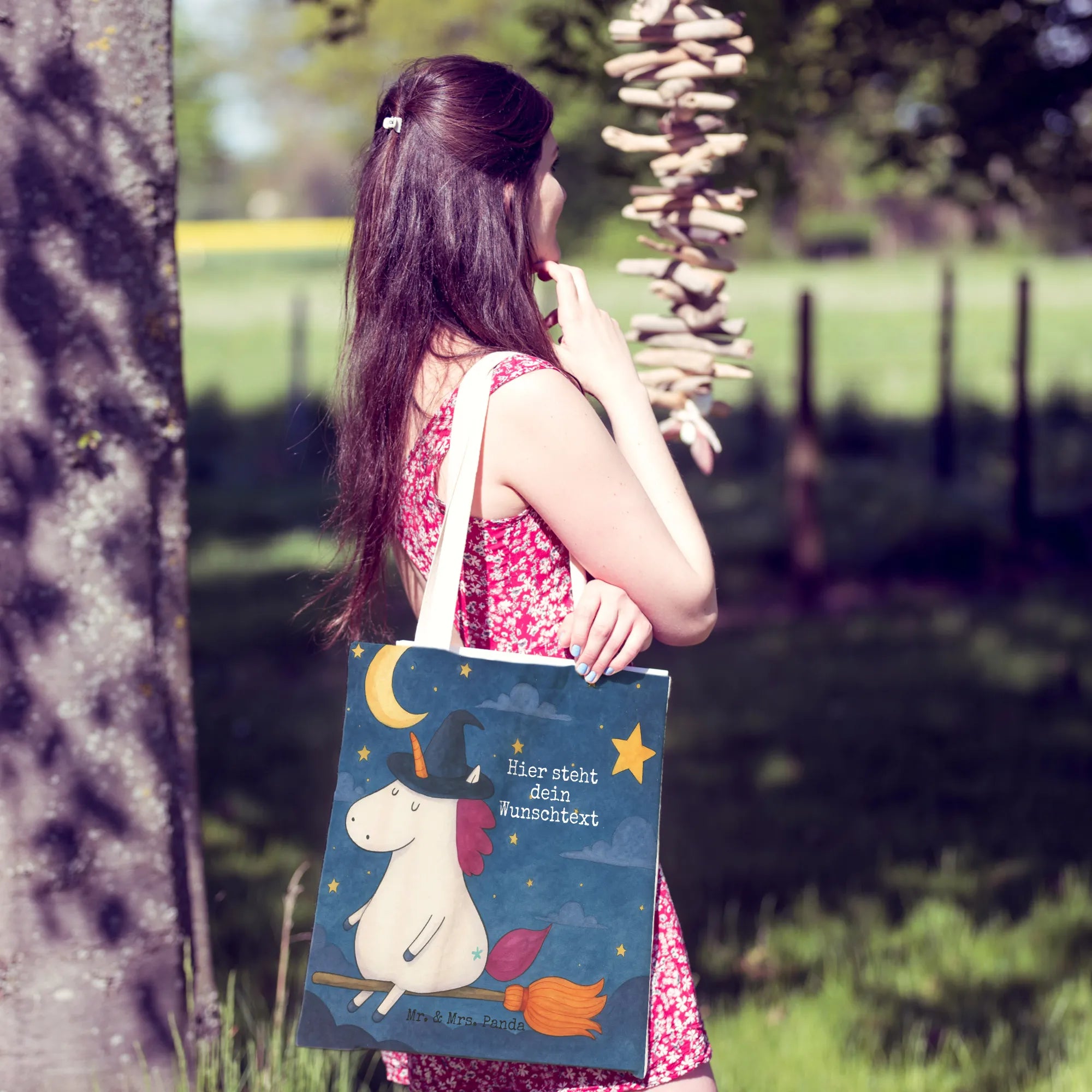 Personalisierte Einkaufstasche Einhorn Hexe Design