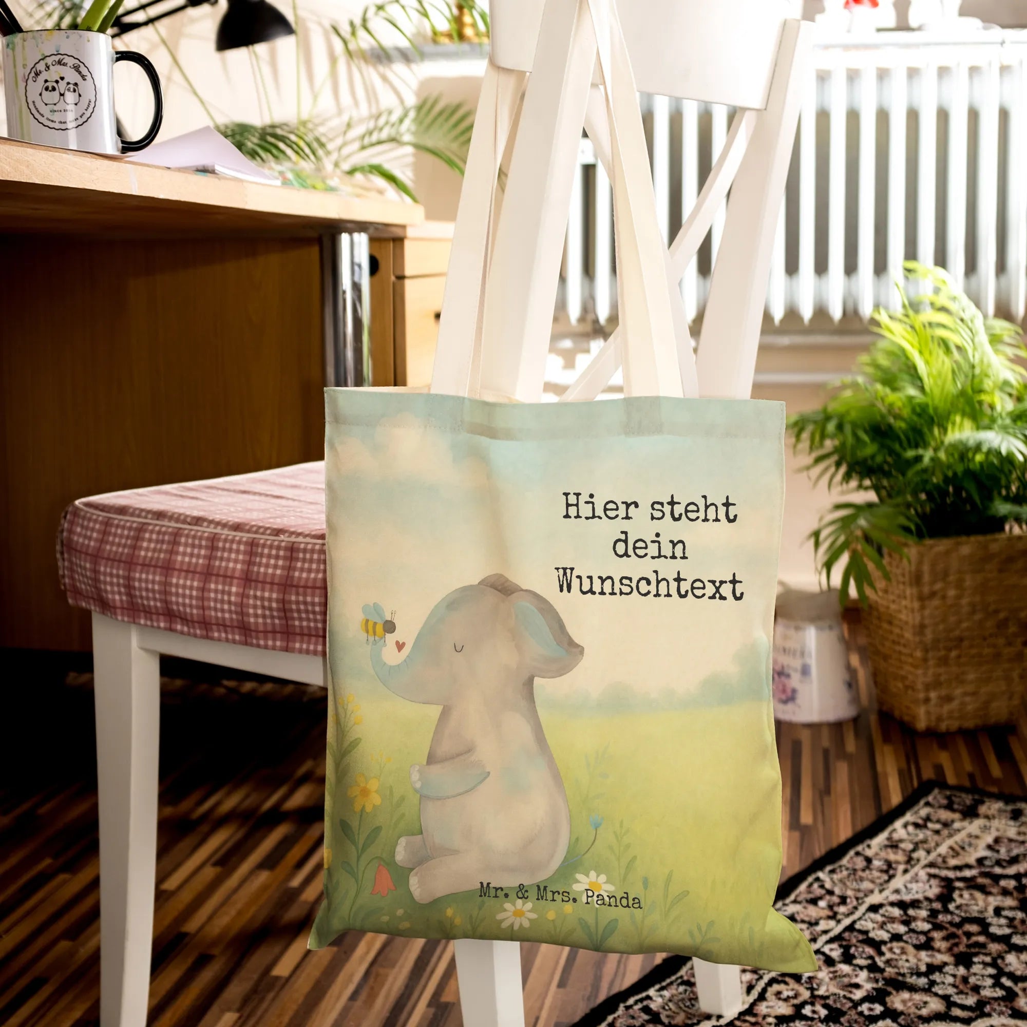 Personalisierte Einkaufstasche Elefant Biene Design