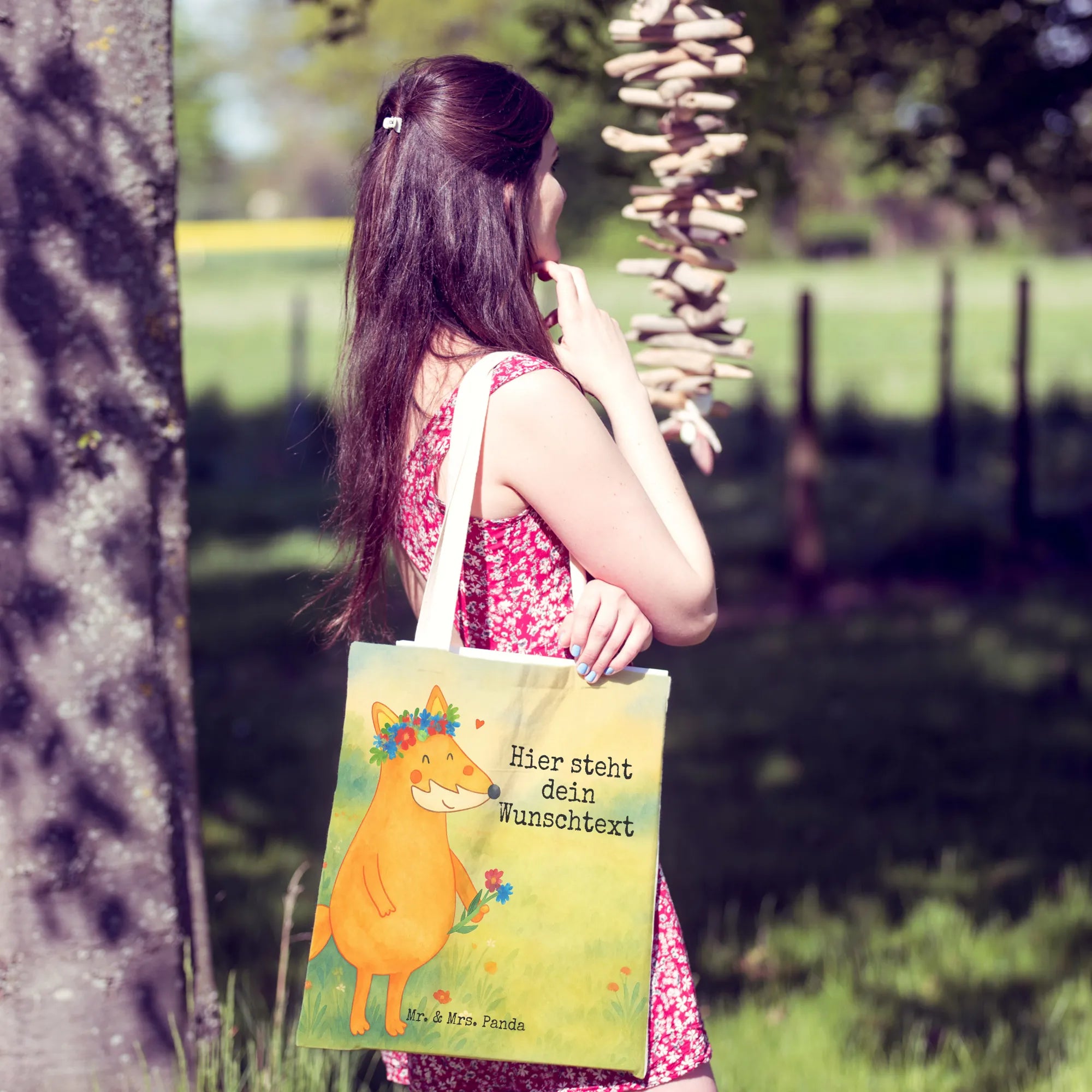 Personalisierte Einkaufstasche Fuchs Blumen Design