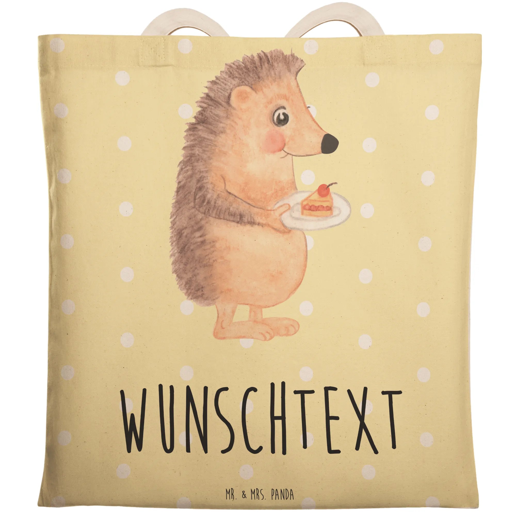 Du suchst nach einem ganz besonderen Geschenk? Dann ist die personalisierte Einkaufstasche mit dem süßen Motiv 'Igel mit Kuchenstück' aus der zauberhaften Small World Kollektion von Mr. & Mrs. Panda genau das Richtige für dich!