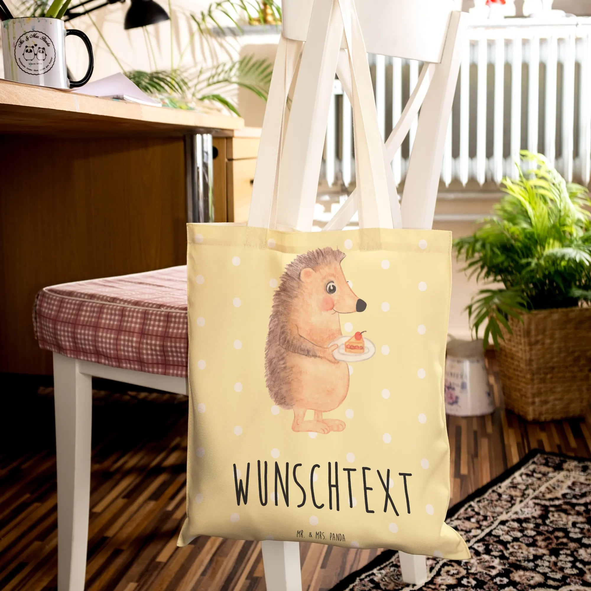 Personalisierte Einkaufstasche Igel mit Kuchenstück