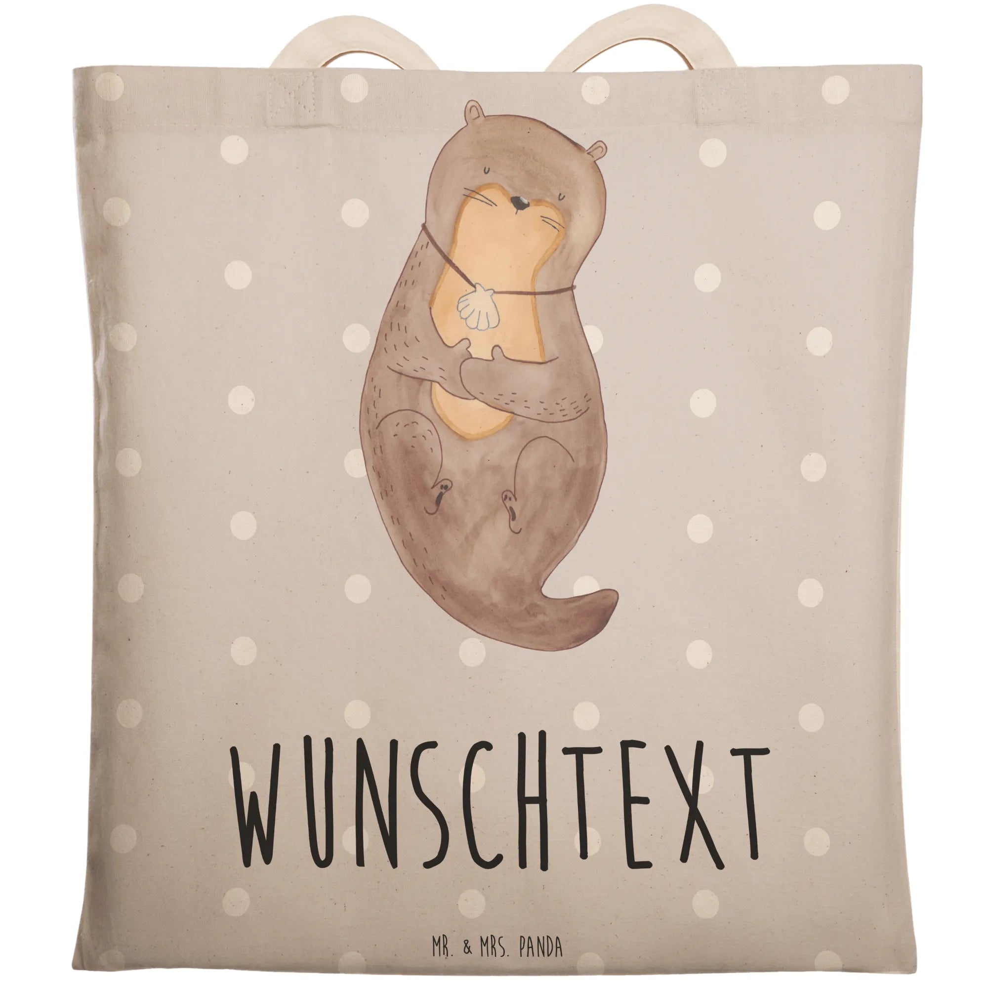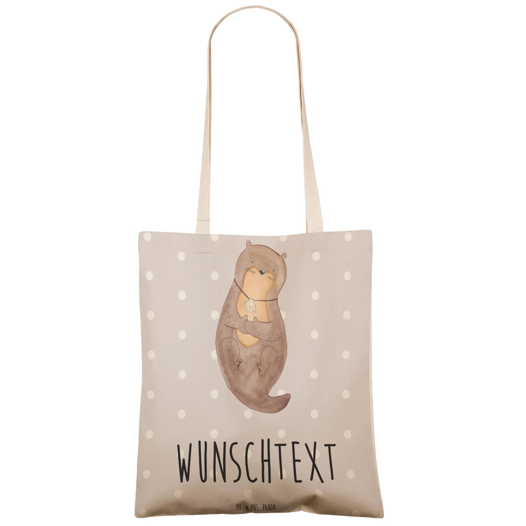 Personalisierte Einkaufstasche Otter mit Muschelmedaillon – Mr. & Mrs. Panda