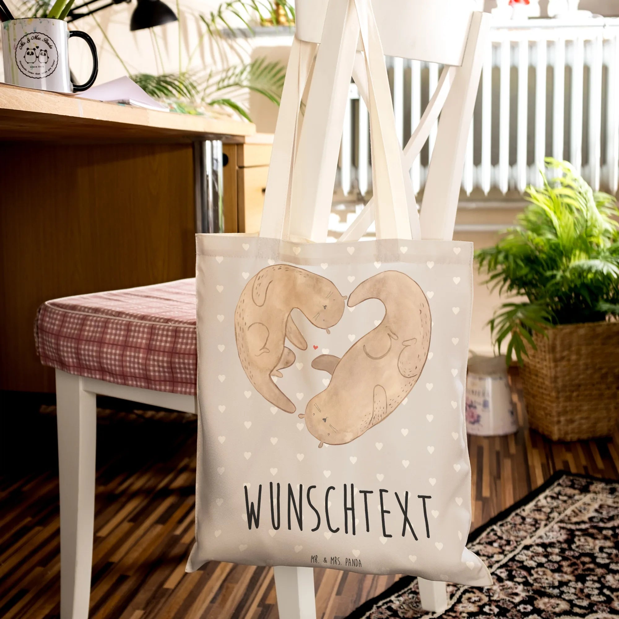Entdecke die perfekte personalisierte Einkaufstasche mit dem bezaubernden Otter Valentine Motiv von Mr. & Mrs. Panda! Diese Tasche ist mehr als nur ein praktisches Accessoire – sie ist ein liebevolles Geschenk für deinen Partner oder deine Partnerin. Mit einem herzlichen Slogan "Happy valentine's day my otter half!" und den süßen, ineinander verliebten Ottern, die symbolisch ein Herz formen, wird jede Einkaufstour zu einem romantischen Erlebnis.