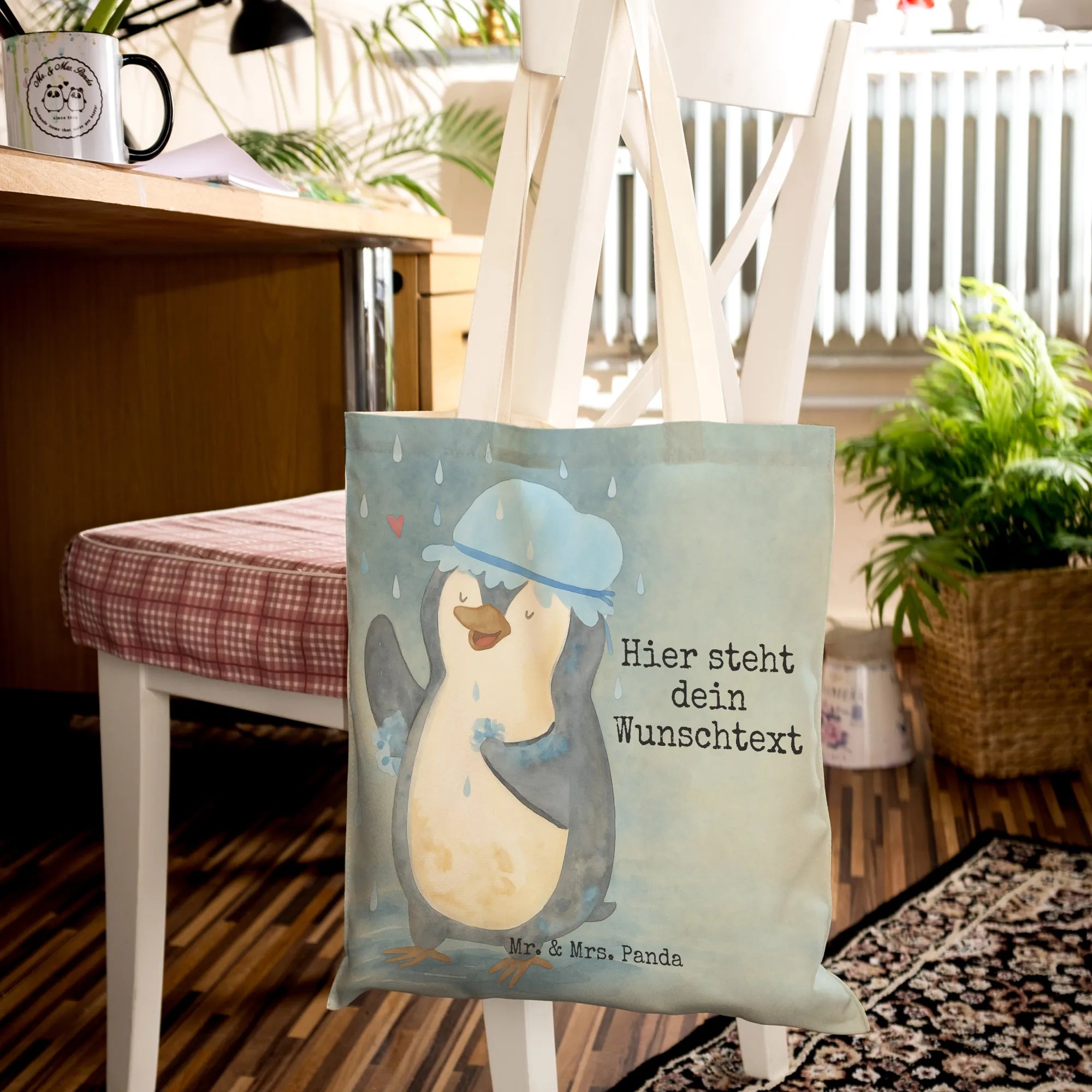 Personalisierte Einkaufstasche Pinguin Duschen Design